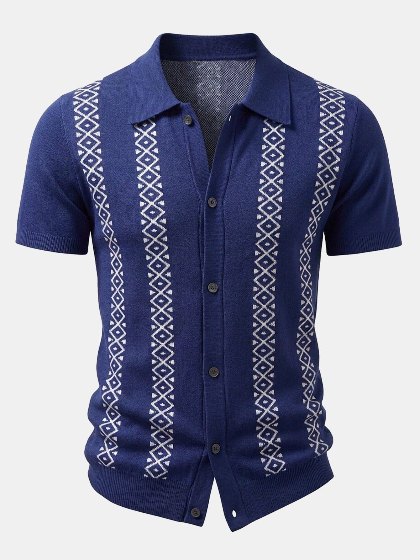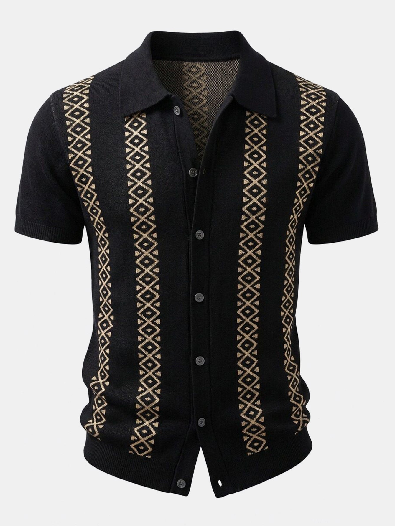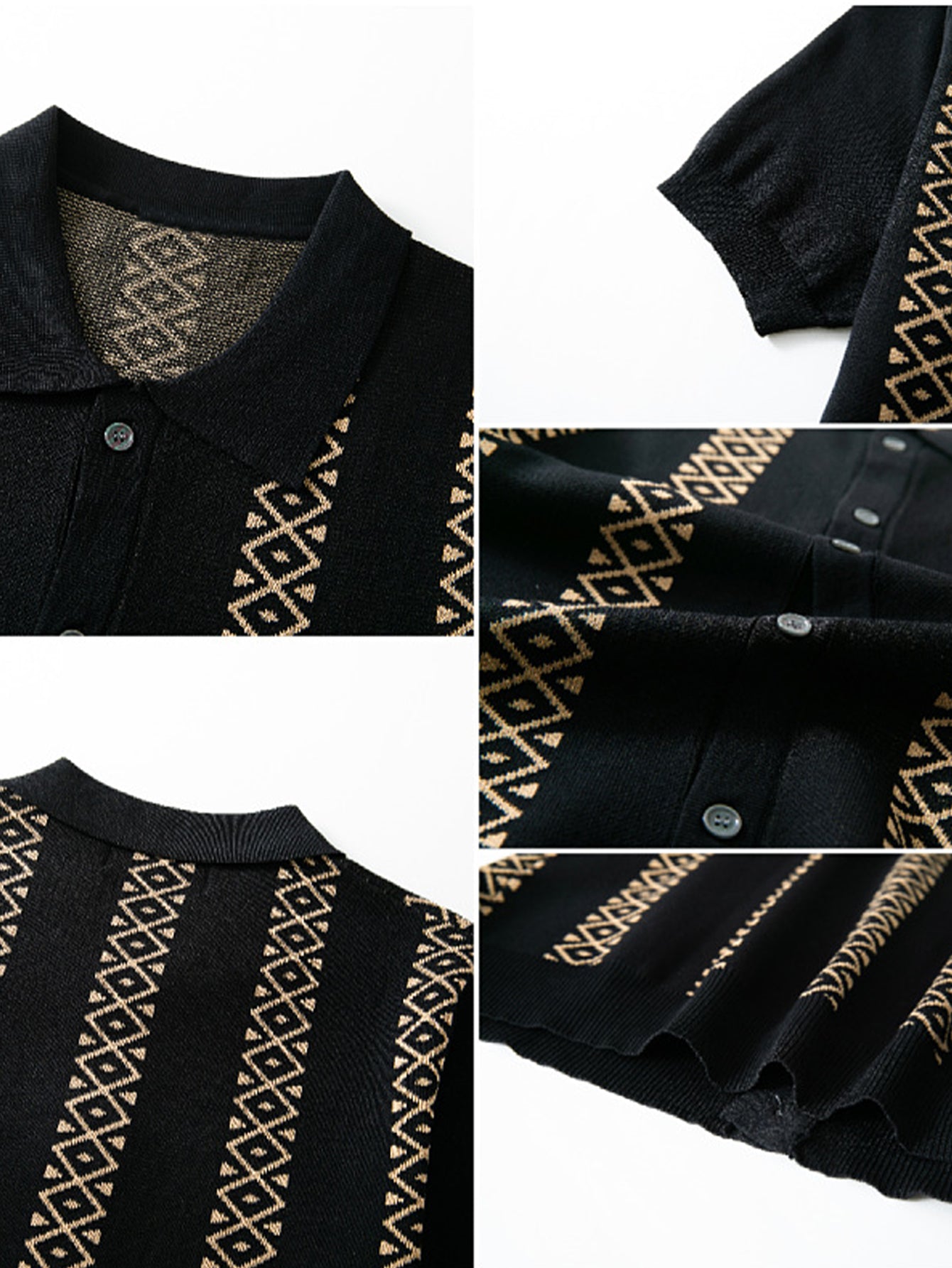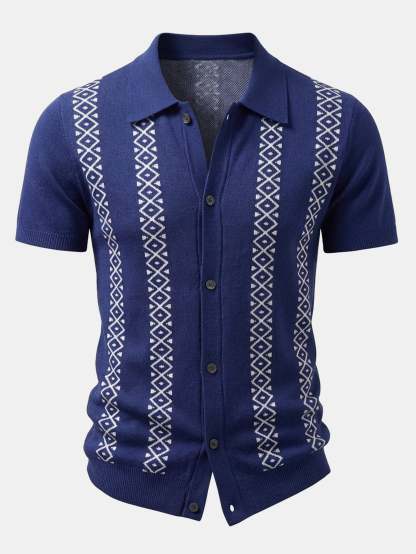 Designed with bold geometric patterns and a classic knit texture, this shirt blends retro charm with modern comfort. The soft, breathable knit fabric offers a comfortable fit, making it perfect for casual wear, layering, or adding a statement touch to your everyday outfits.