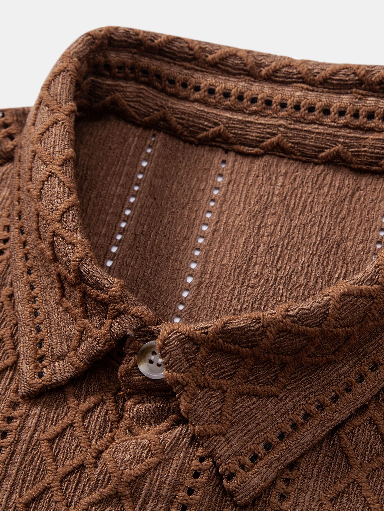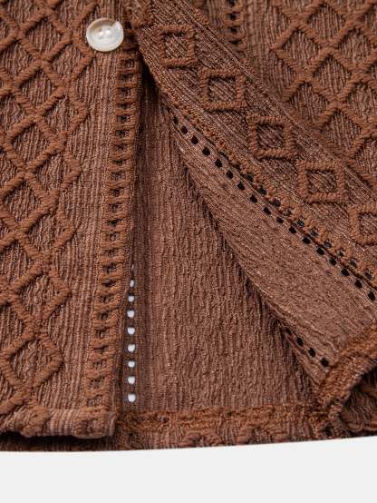 Add structure and edge to your wardrobe with this geometry rhombus jacquard shirt. Featuring a raised geometric pattern woven into the fabric, this shirt combines clean lines with bold texture — perfect for making a subtle yet striking statement.