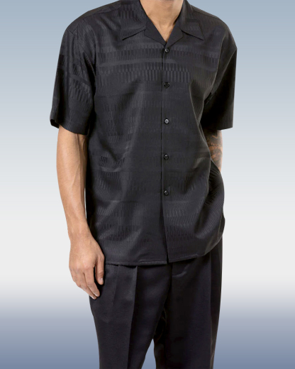 Gradient Black Short Sleeve Trousers Two-Piece Walking Set