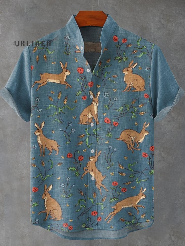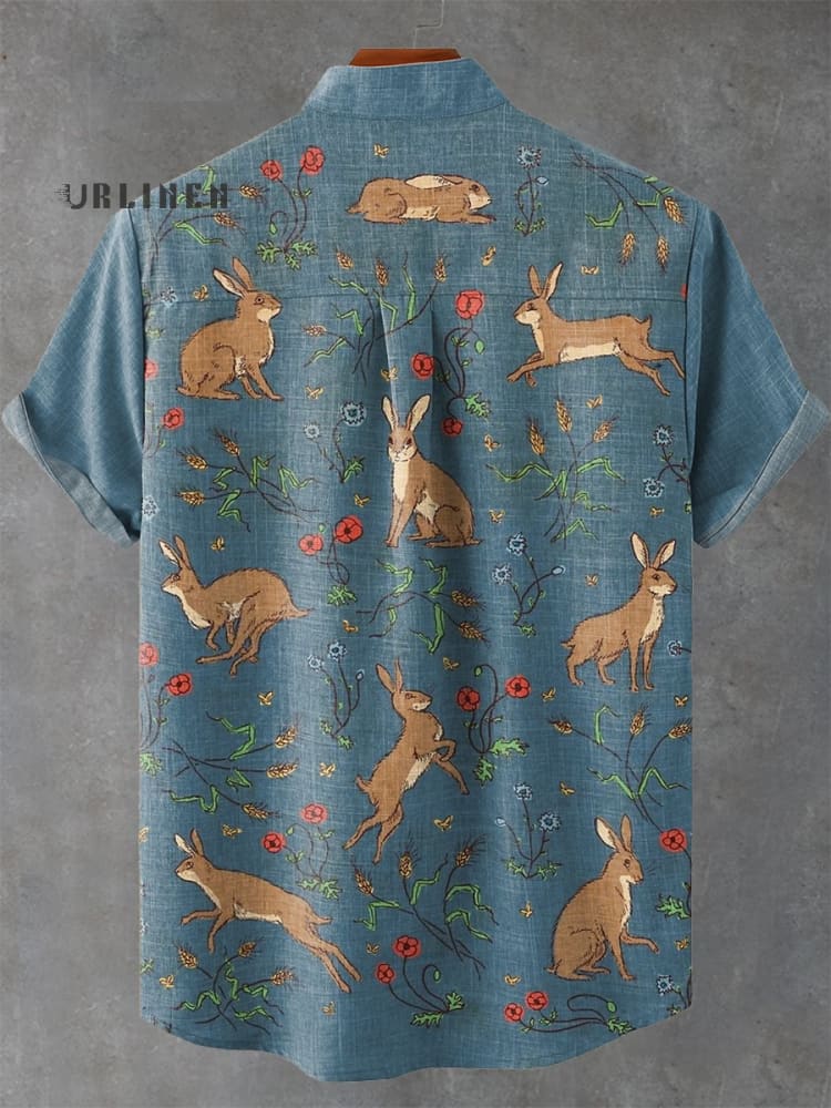 Hares and Flowers Vintage Print Casual 100% Cotton Shirt