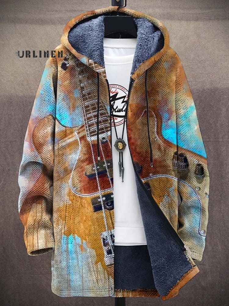 Ink Guitar Music Vintage Print Casual 100% Cotton Shirt