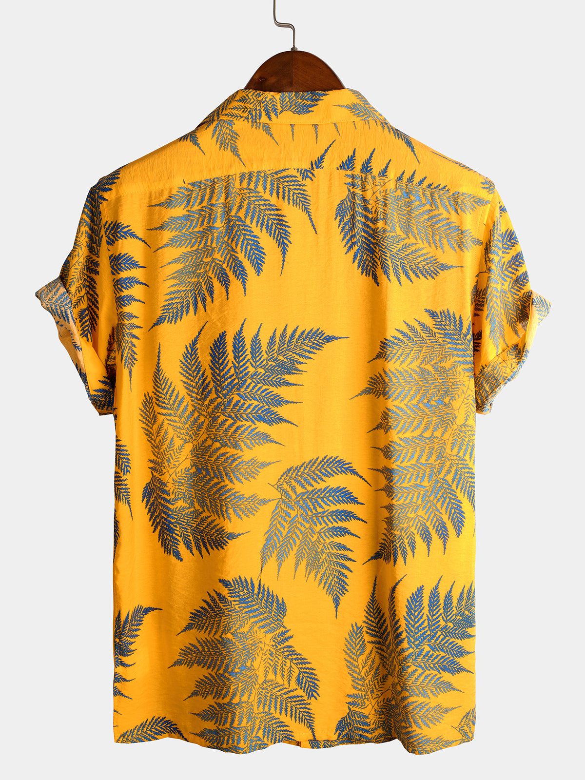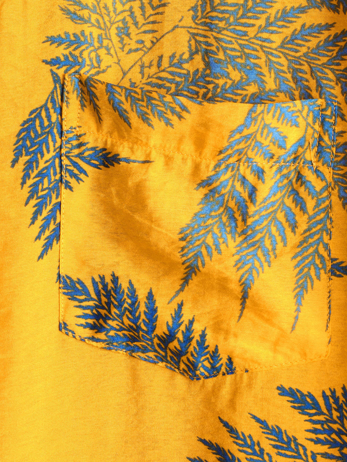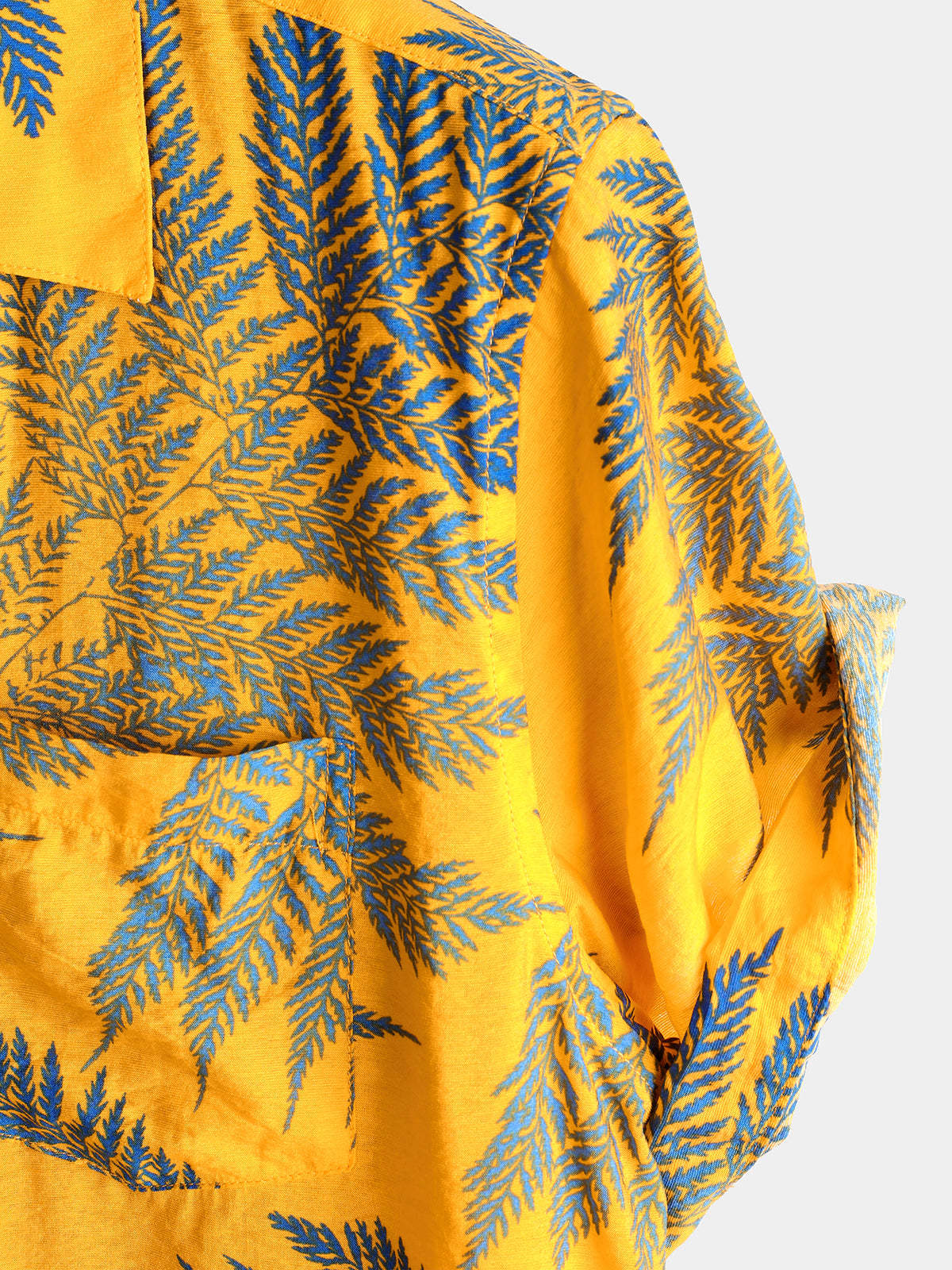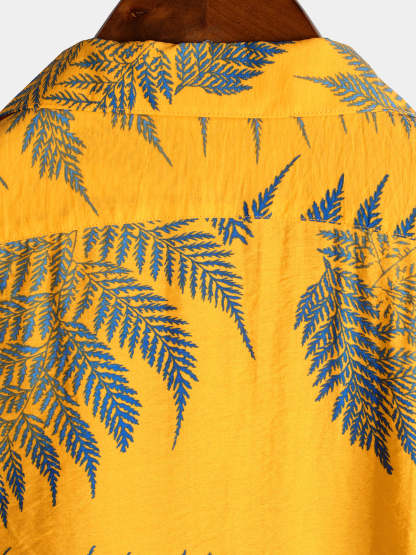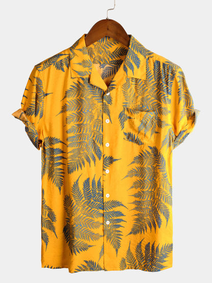 Men's Tropical Leaf Print Hawaiian Pocket Collared Top Cotton Button Up Short Sleeve Shirt