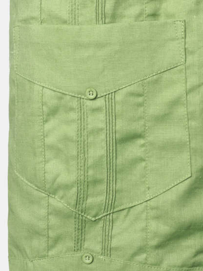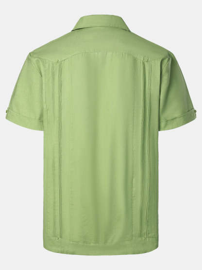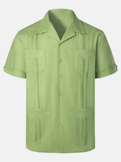 Men’s Pocket Linen Cuban Guayabera Summer Camp Button Up Short Sleeve Casual Shirt