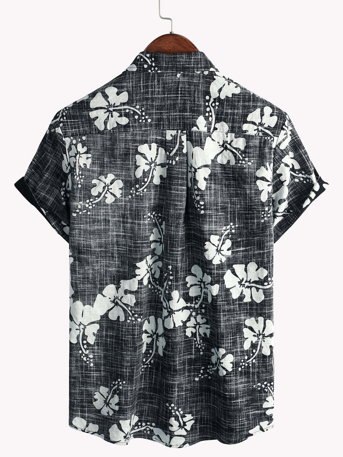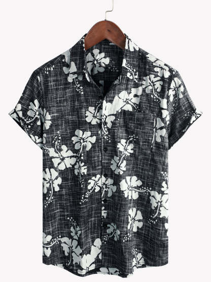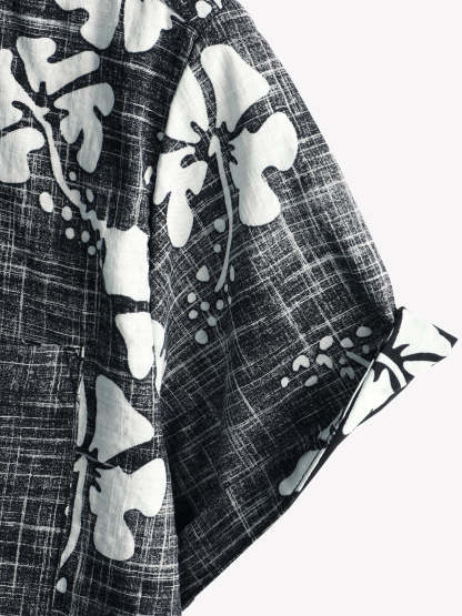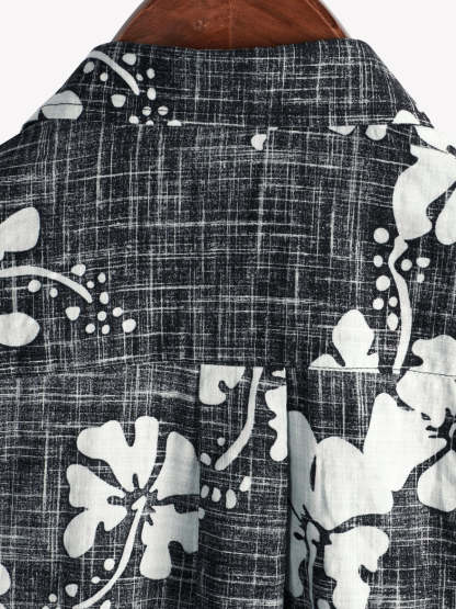 Men's Black Floral Vintage Short Sleeve Button Up Beach Tropical Hawaiian Shirt