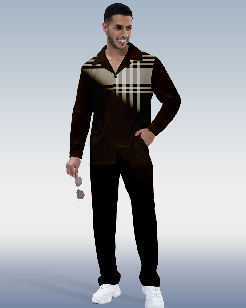 Men's Black Printed Long Sleeve Shirt Walking Suit 25