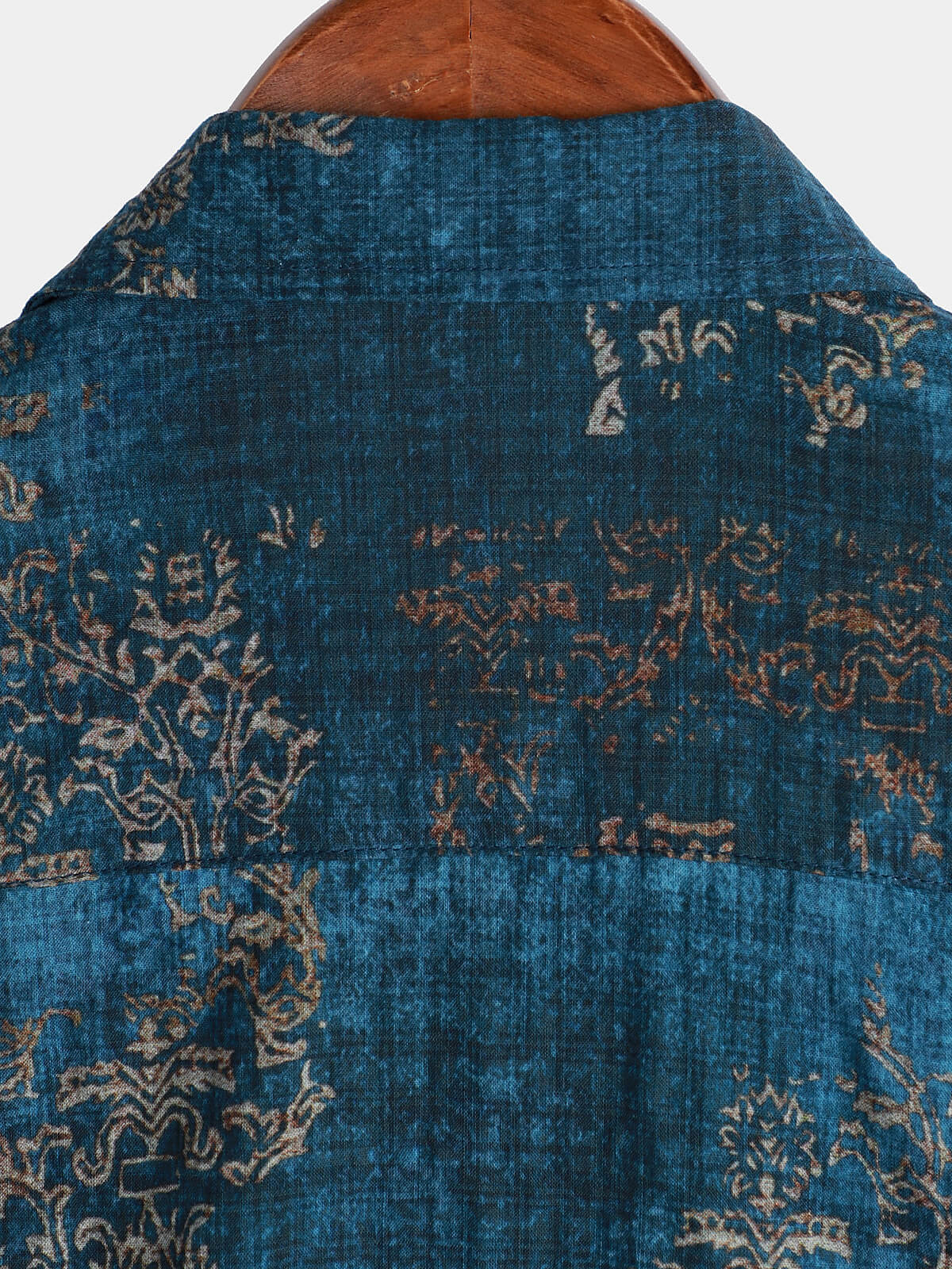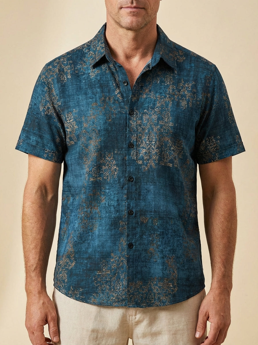 Men's Blue Cotton Vintage Short Sleeve Summer Button Up Shirt