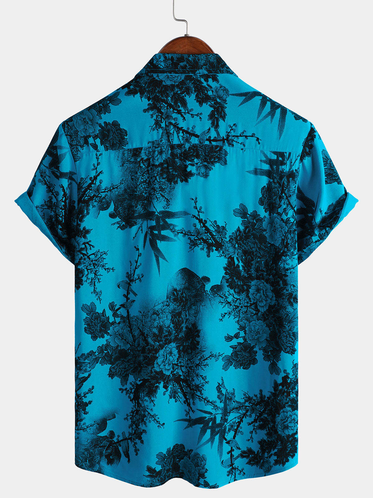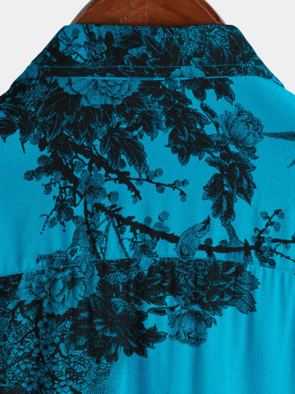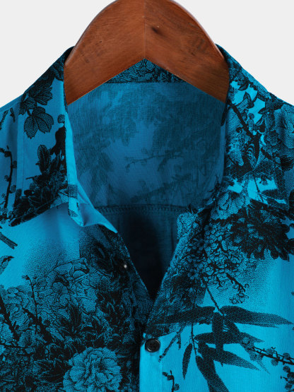 Men's Blue Retro Holiday Breathable Flower Hawaiian Short Sleeve Shirt