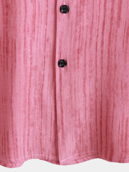 Men's Breathable Short Sleeve Pocket Pink Striped Shirt
