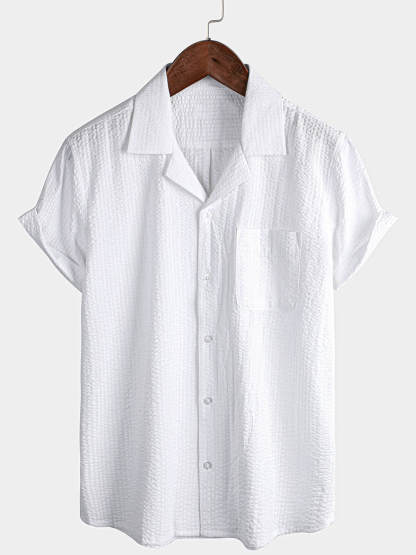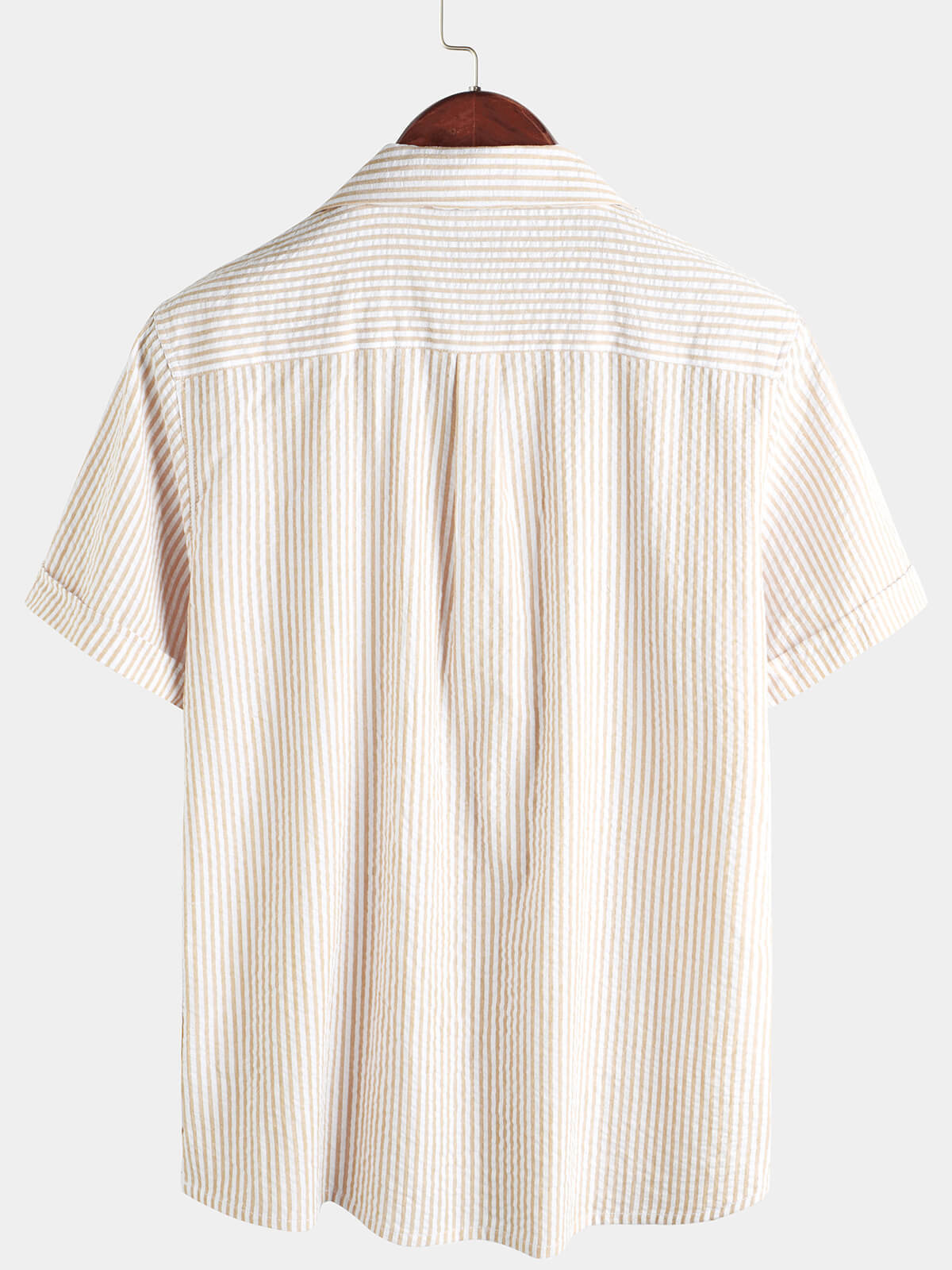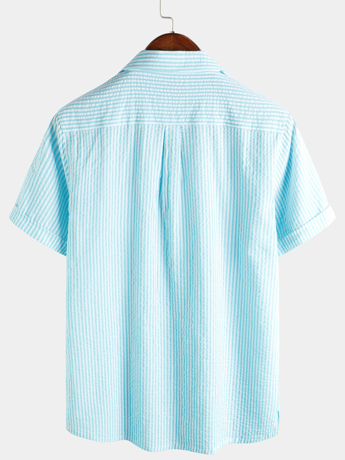 Men's Button Up Casual 100% Cotton Summer Pocket Short Sleeve Shirt