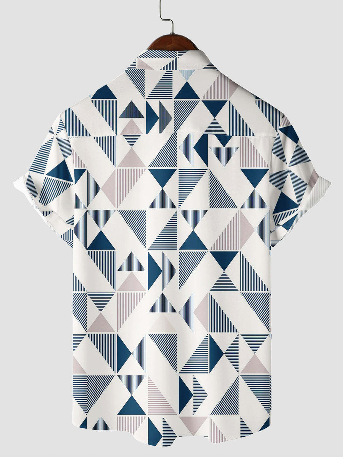 Men's Casual Art Blue and White Triangle Geometric Print Short Sleeve Summer Beach Button Up Shirt