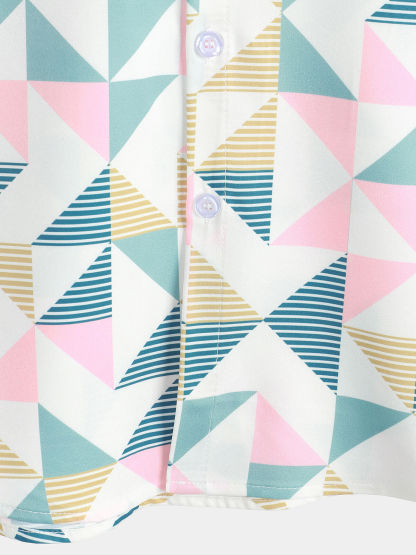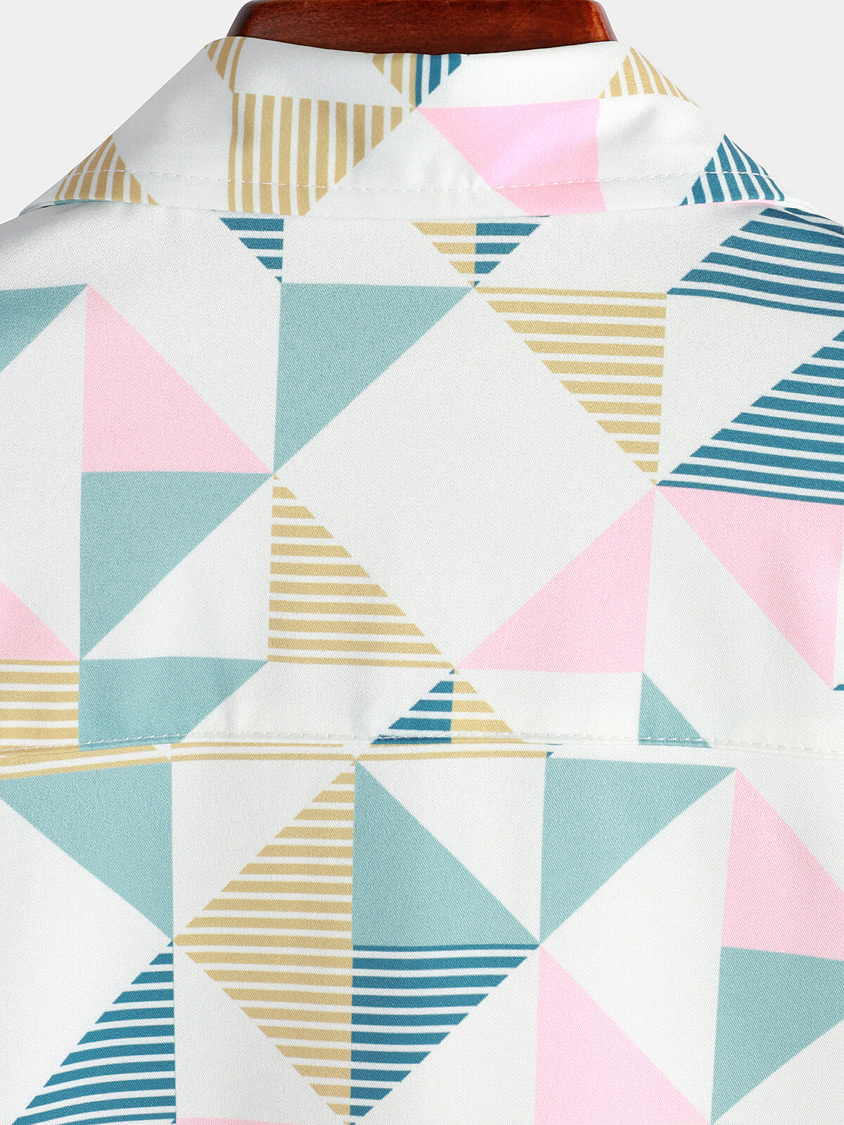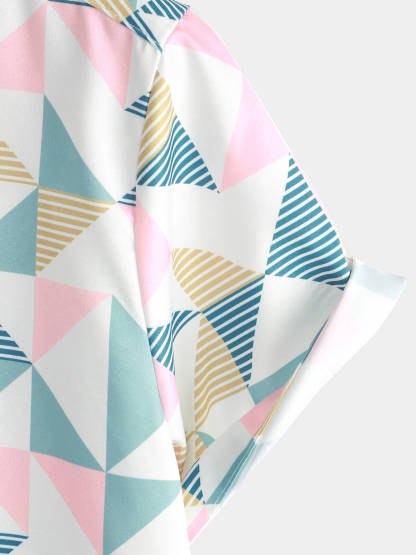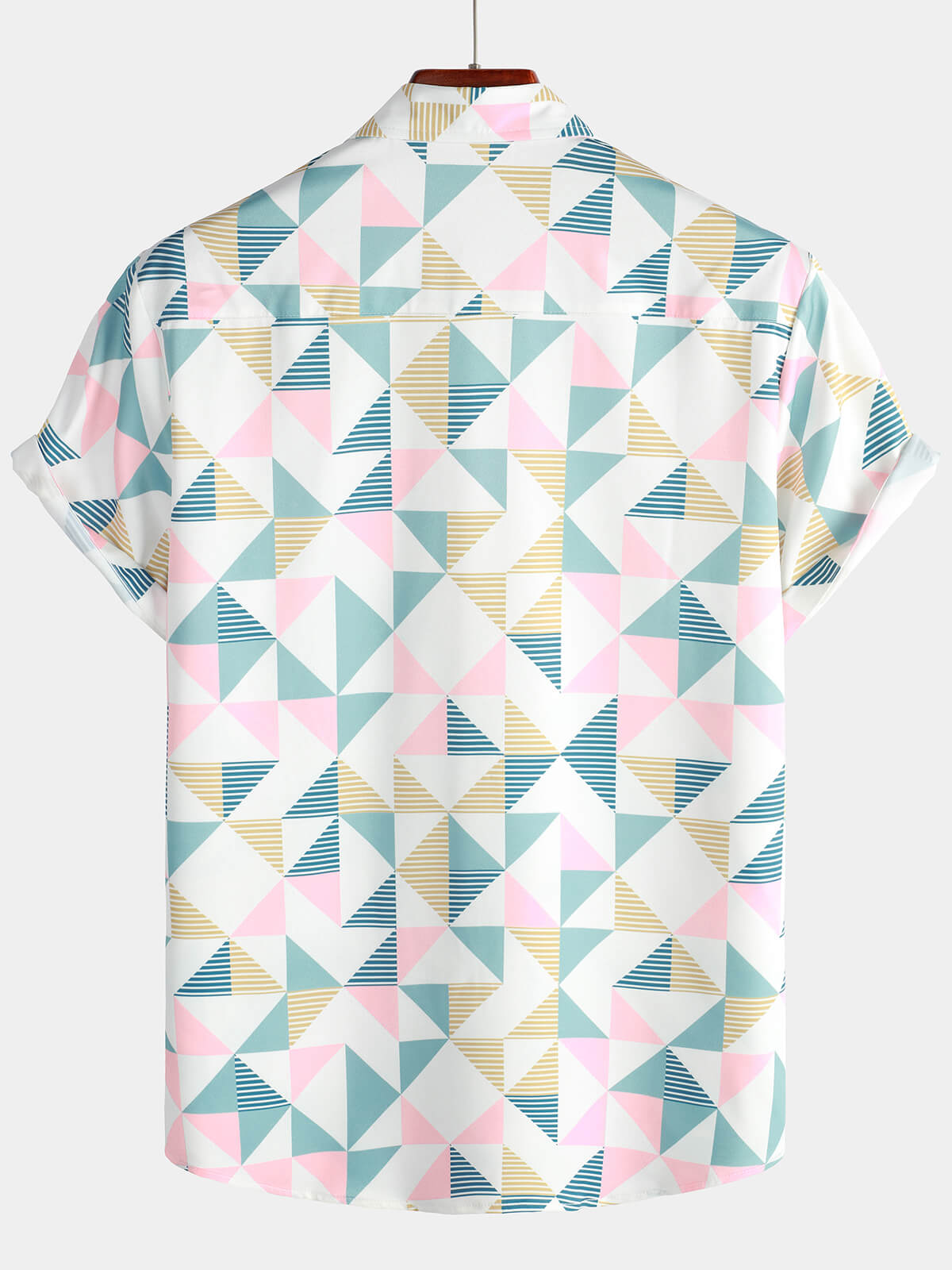 Men's Casual Art Triangle Geometric Print Summer Short Sleeve Beach Shirt