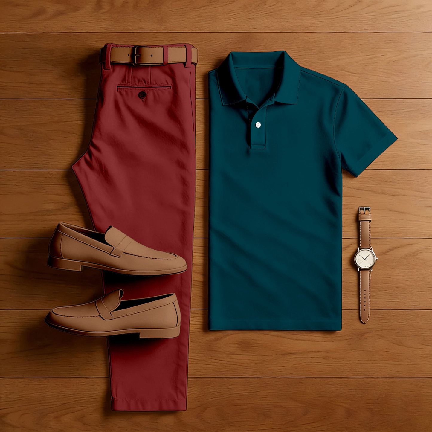 Men's Casual Red Brown & Green Contrast Color Short Sleeved Polo Shirt – Mentalmens