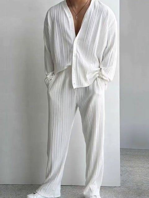 Men's Casual Gorgeous Long Sleeve Shirt Two Piece Set Colors