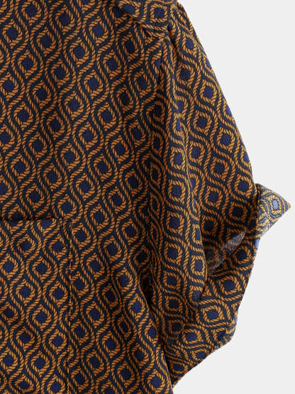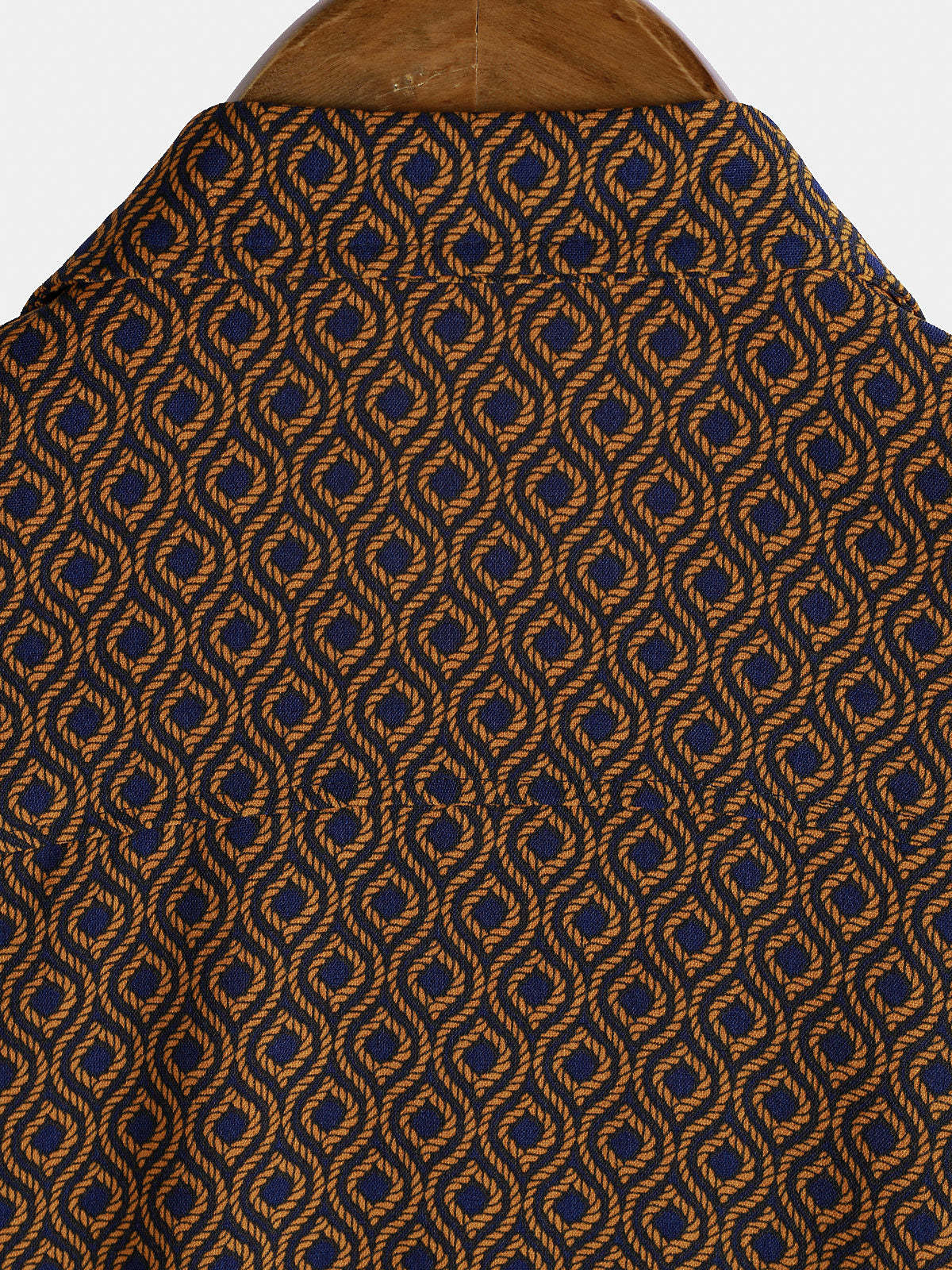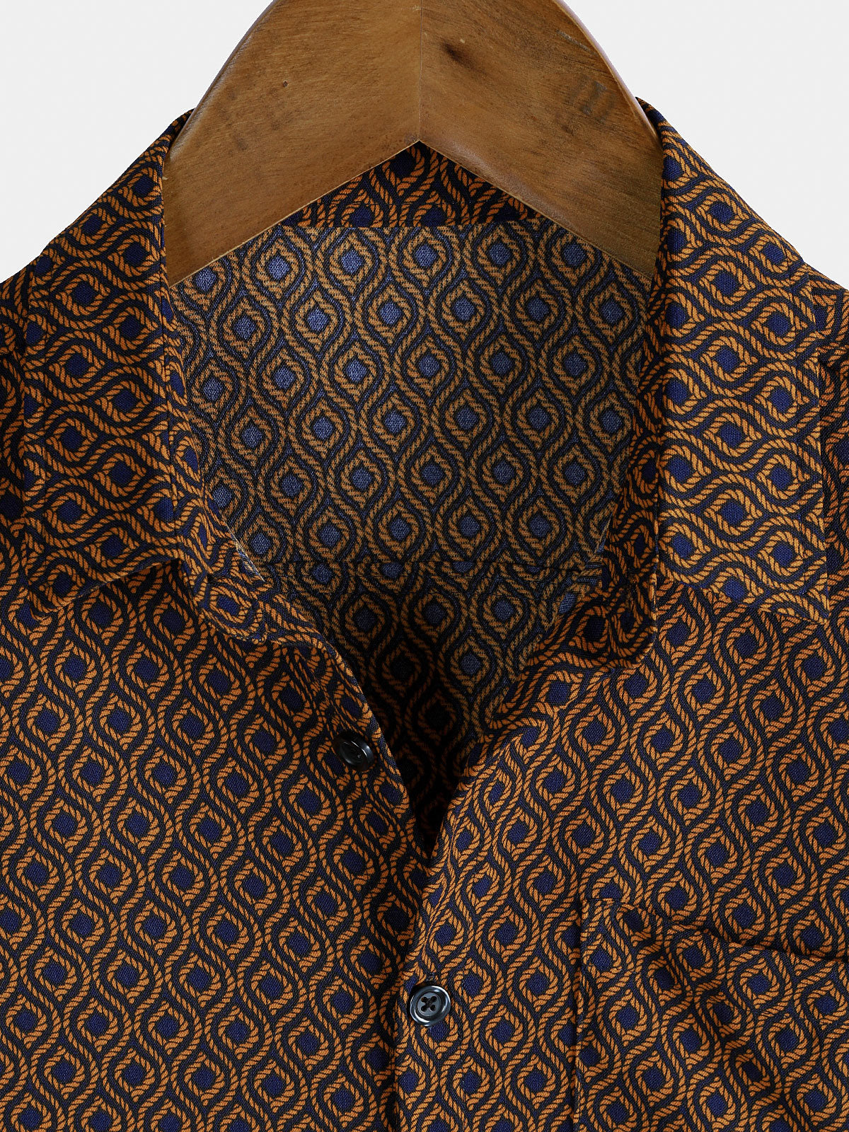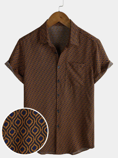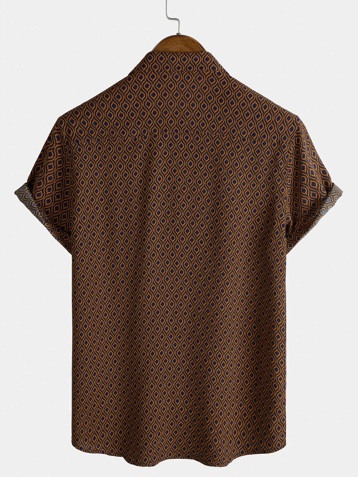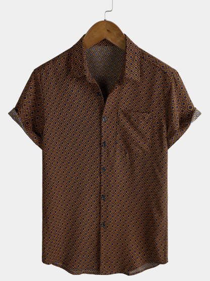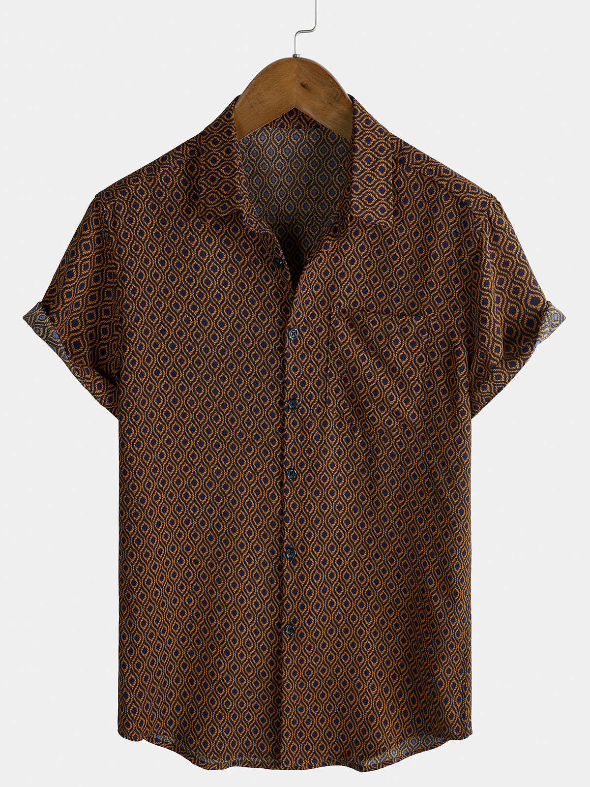 Men's Casual Holiday Brown Short Sleeve Button Up Retro Shirt