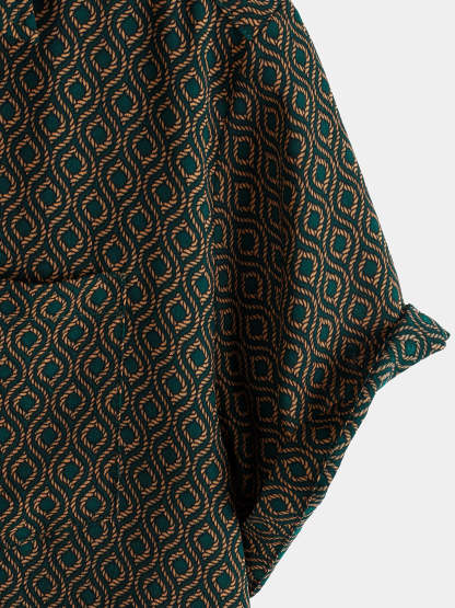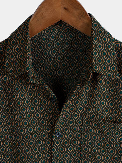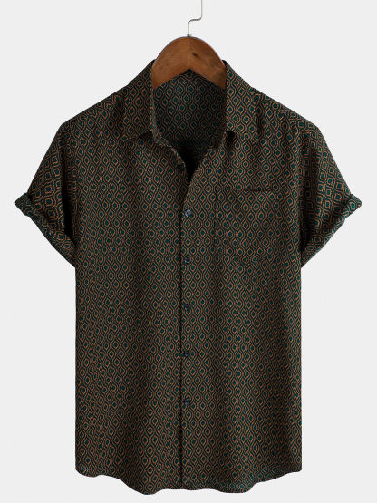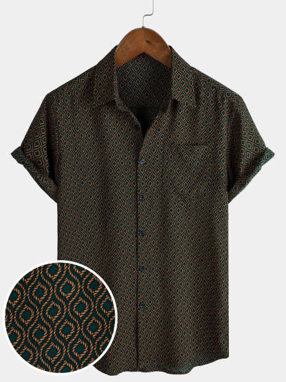 Men's Casual Holiday Short Sleeve Button Up Retro Shirt