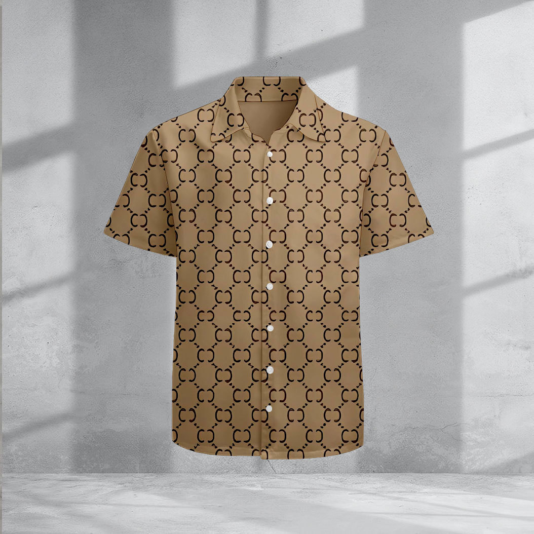 Men's Casual Lapel Brown Vintage Printed Short Sleeve Shirts – Mentalmens