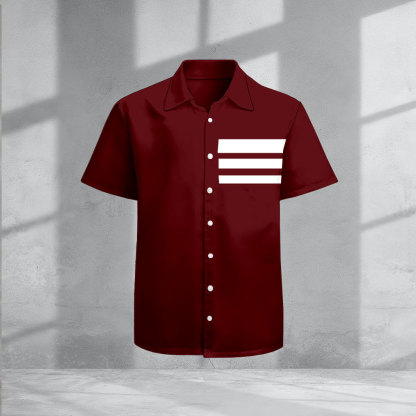 Men's Casual Lapel Maroon & White Striped Printed Short Sleeve Shirts – Mentalmens