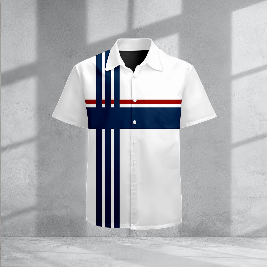 Men's Navy Blue & White Casual Striped Printed Lapel Short Sleeve Shir – Mentalmens