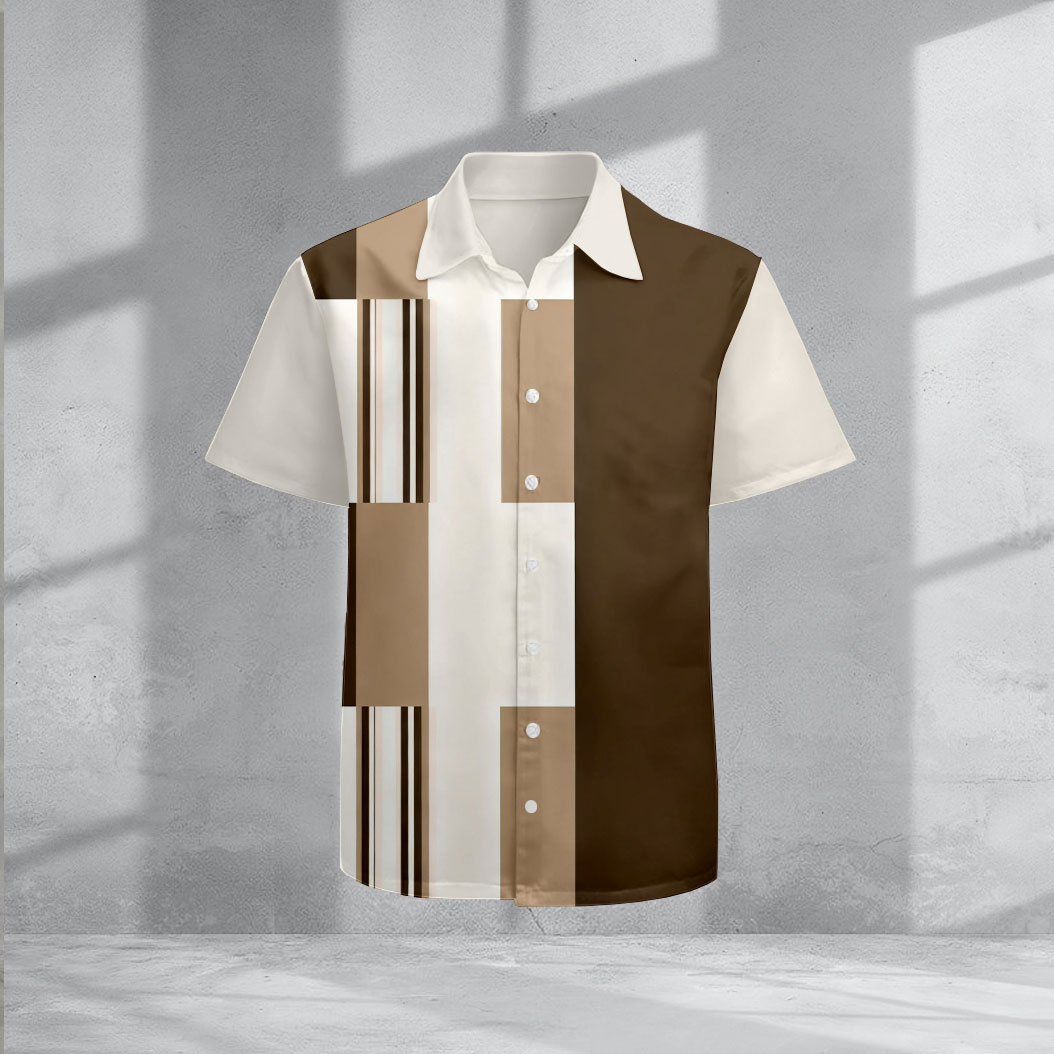 Men's Casual Lapel Coffee & Khaki Geometric Printed Short Sleeve Shirt – Mentalmens