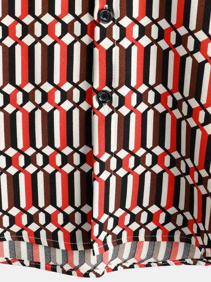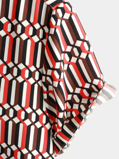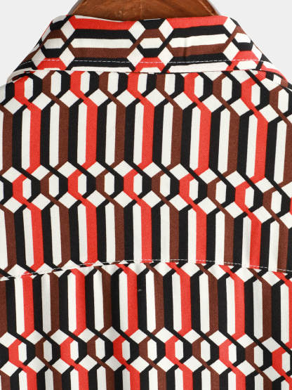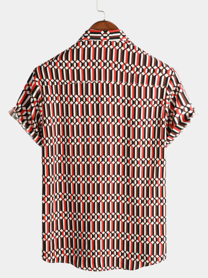 Men's Casual Retro Geometric Button Up Cool Short Sleeve Summer Shirt
