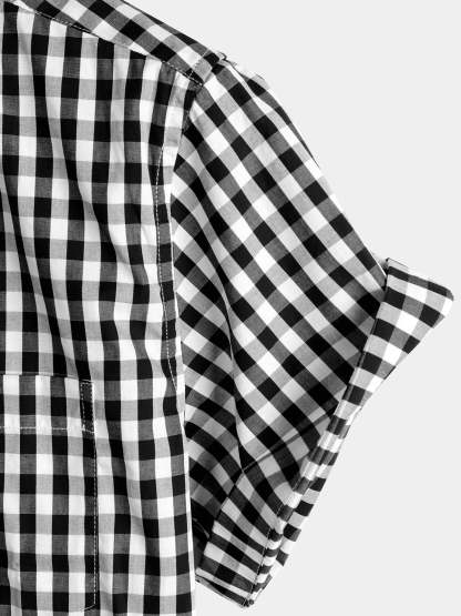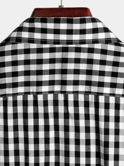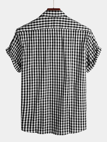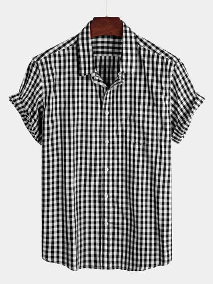 Men's Casual Solid Color Plaid Cotton Pocket Shirt