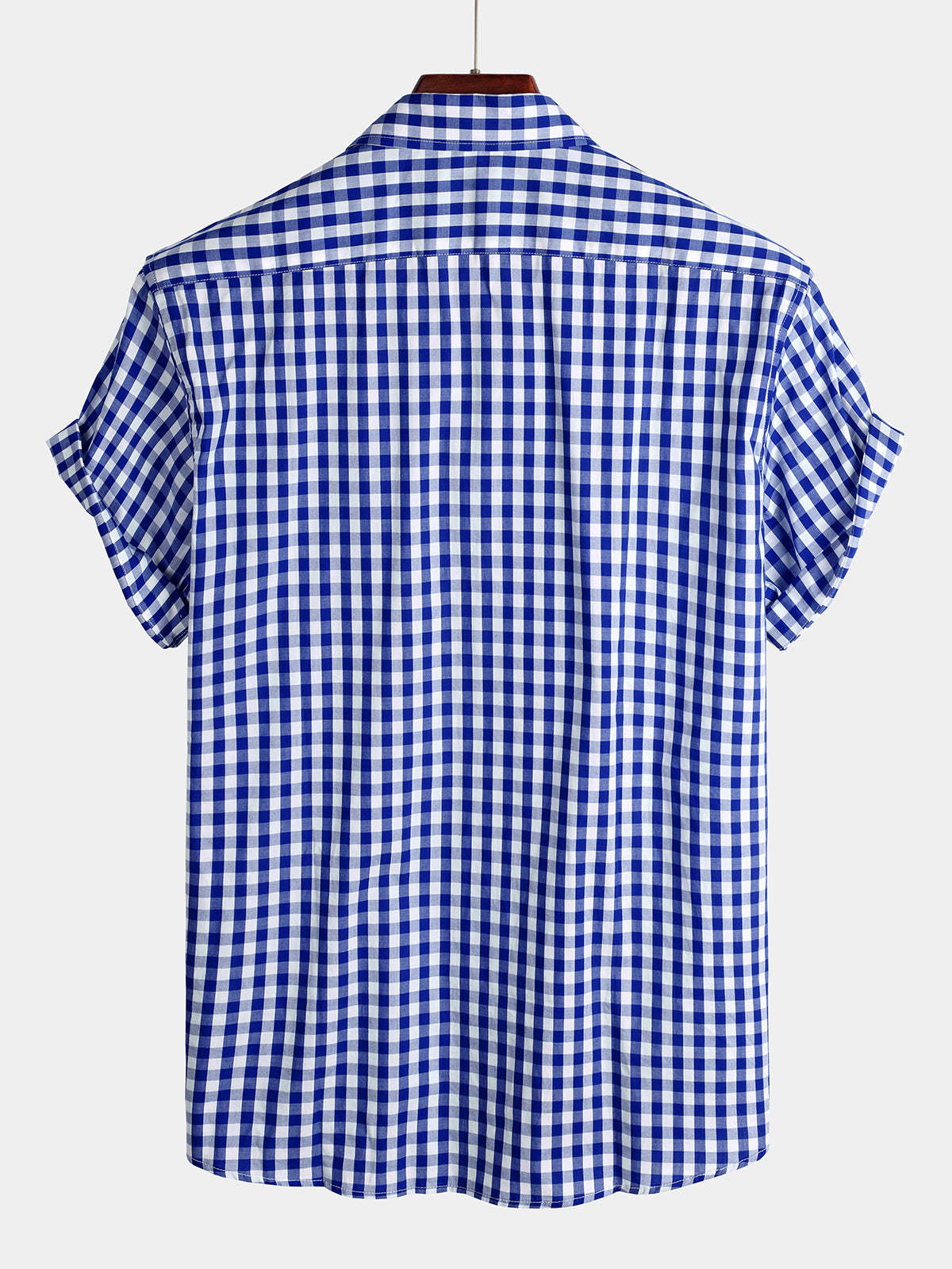 Men's Casual Solid Color Plaid Cotton Pocket Shirt
