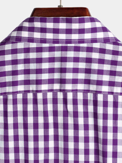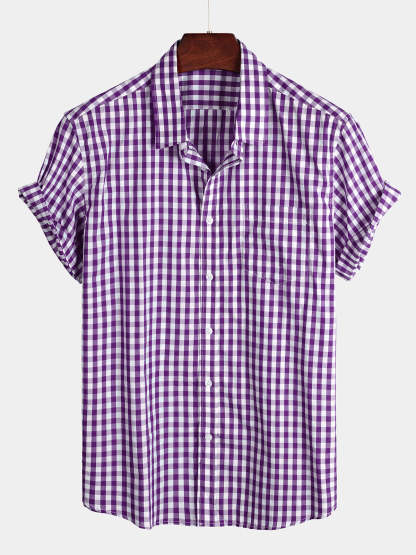Men's Casual Solid Color Plaid Cotton Pocket Shirt