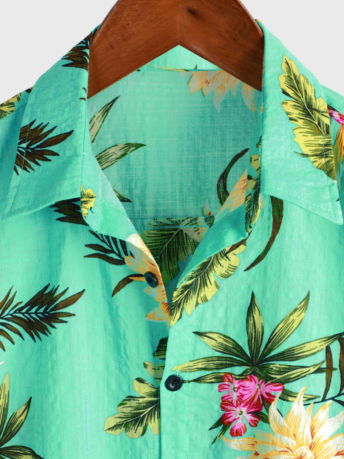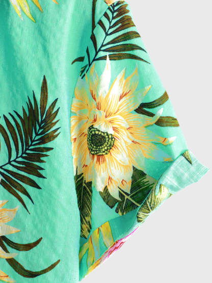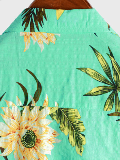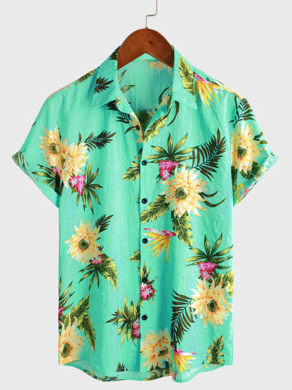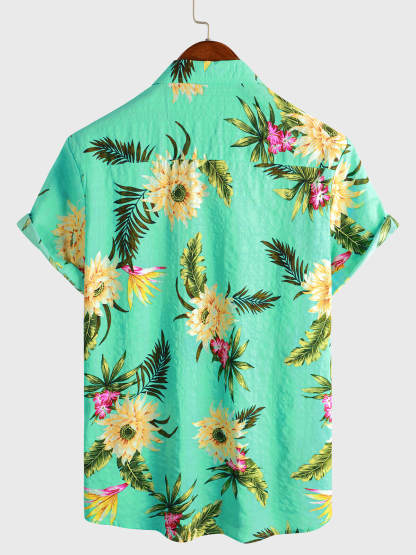 Men's Casual Tropical Floral Print Light Green Hawaiian Holiday Short Sleeve Shirt