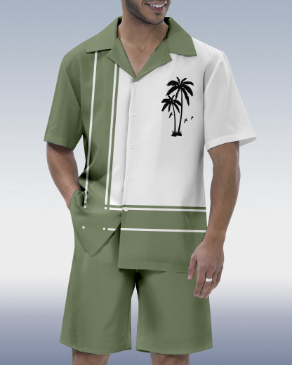 Men's Casual Vacation Hawaiian Cuban Collar Short Sleeve Shirt Set