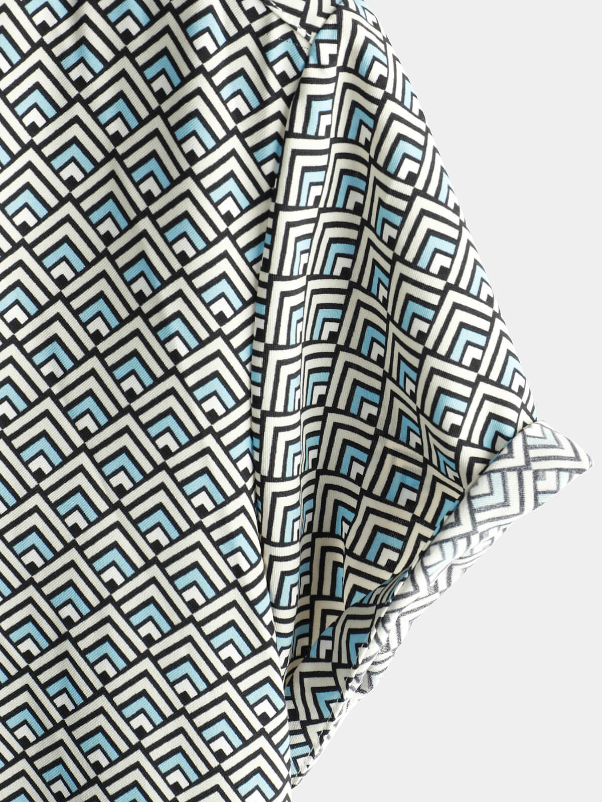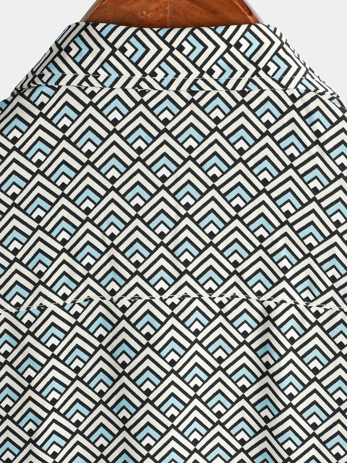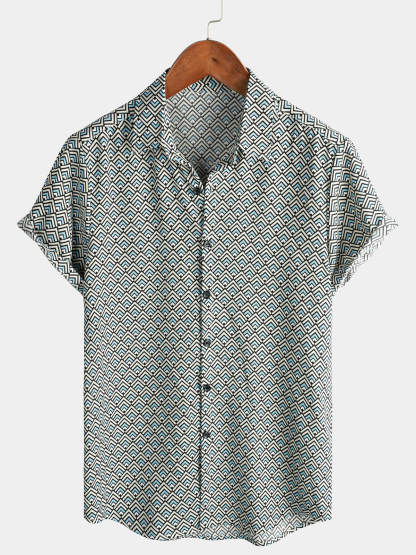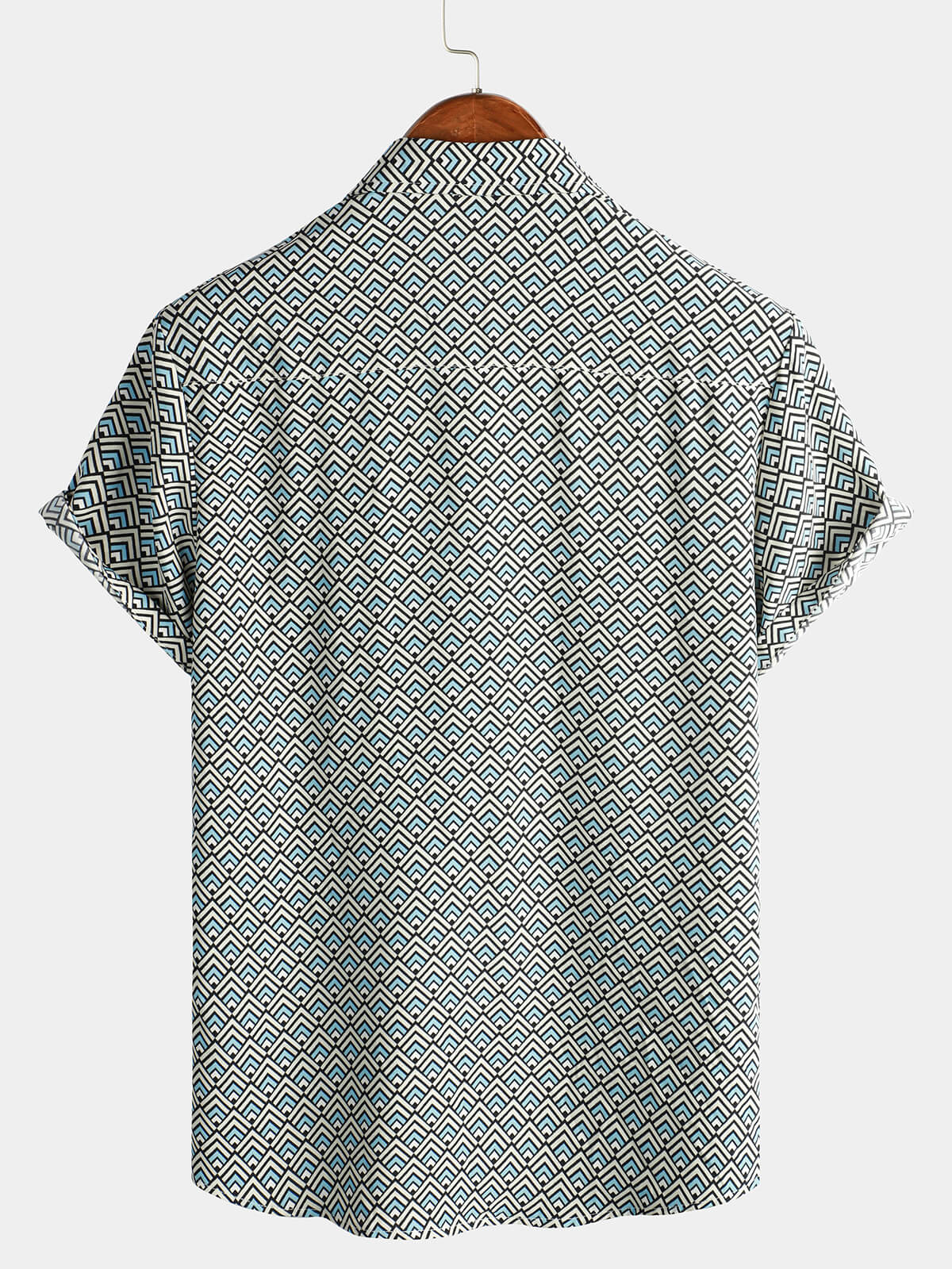 Men's Casual Vintage Geometric Button Up Holiday Summer Retro Short Sleeve Shirt