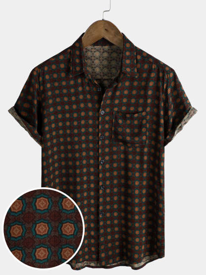 Men's Casual Vintage Summer Beach Short Sleeve Shirt