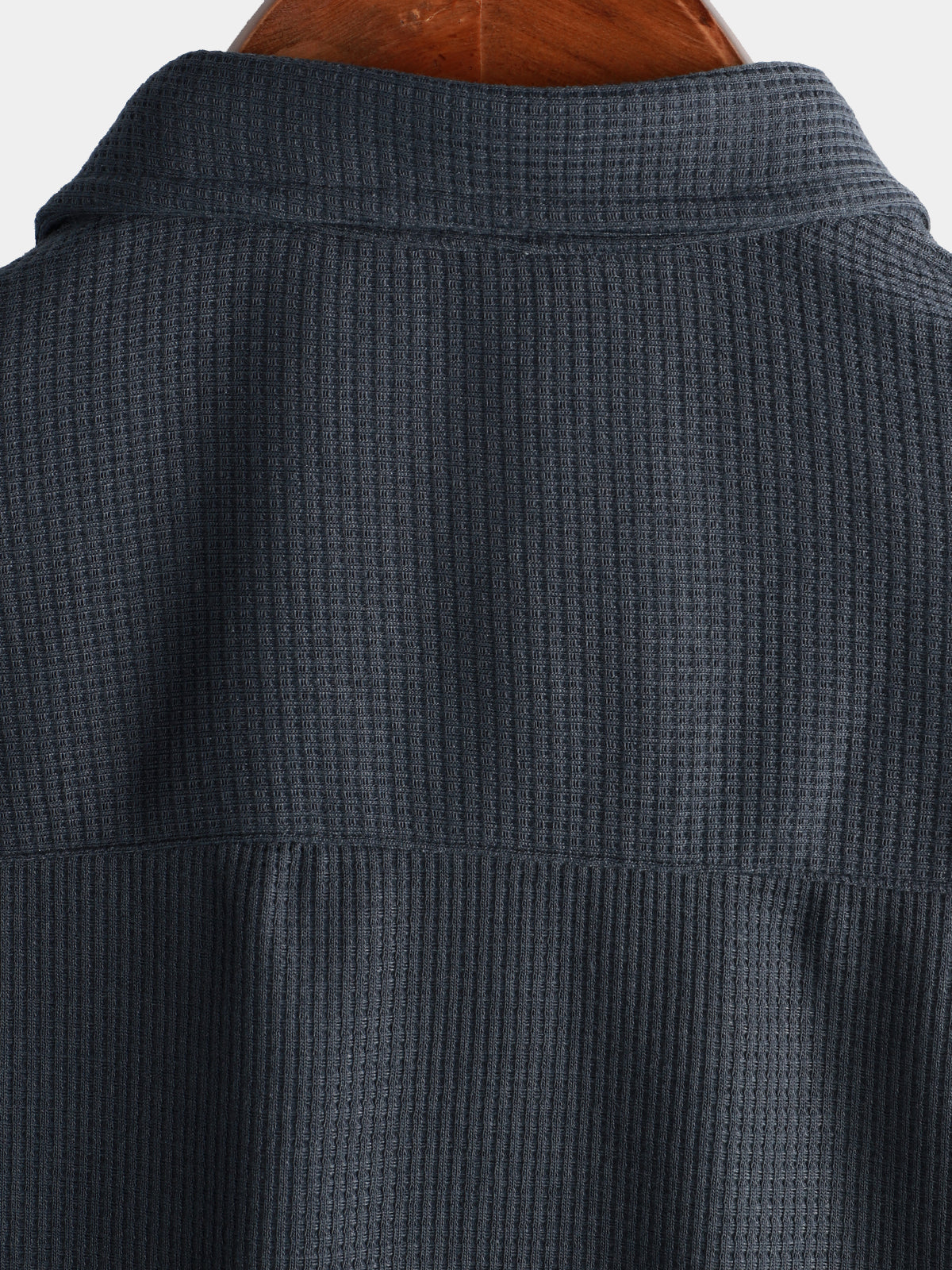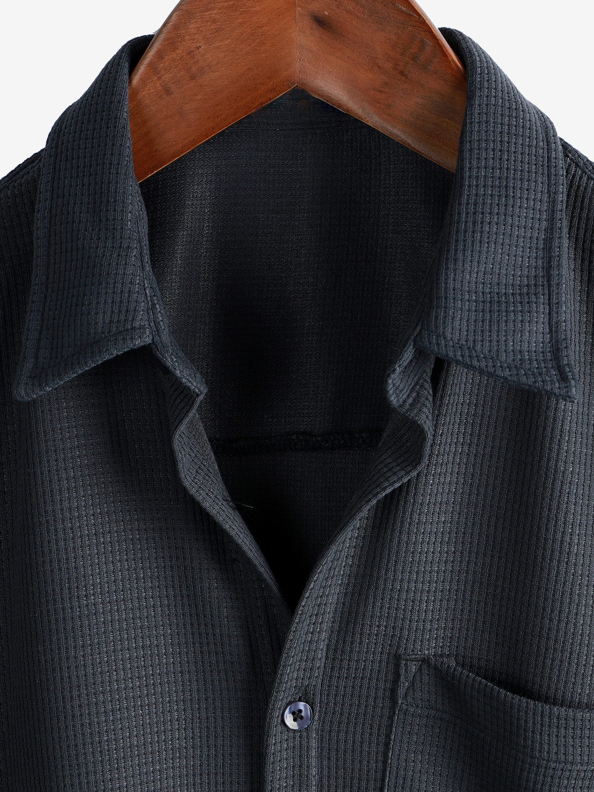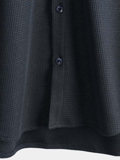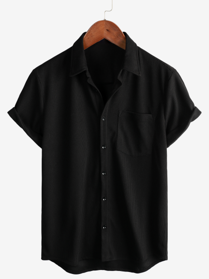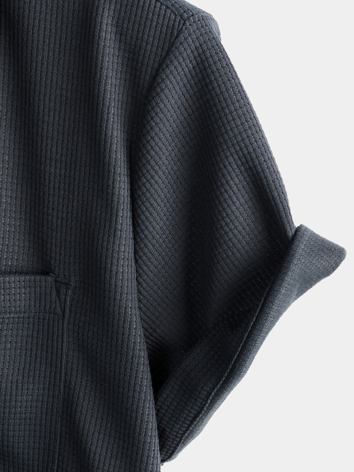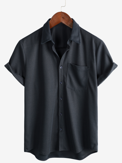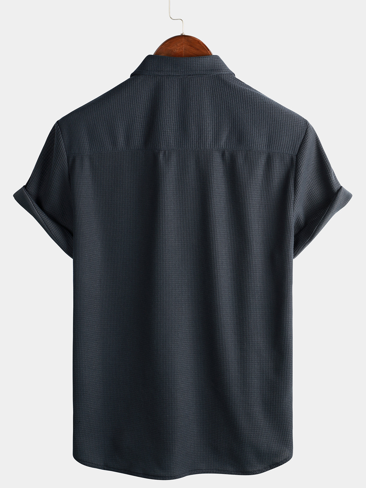 Men's Casual Waffle Short Sleeve Button Up Summer Loose Fit Beach Shirt