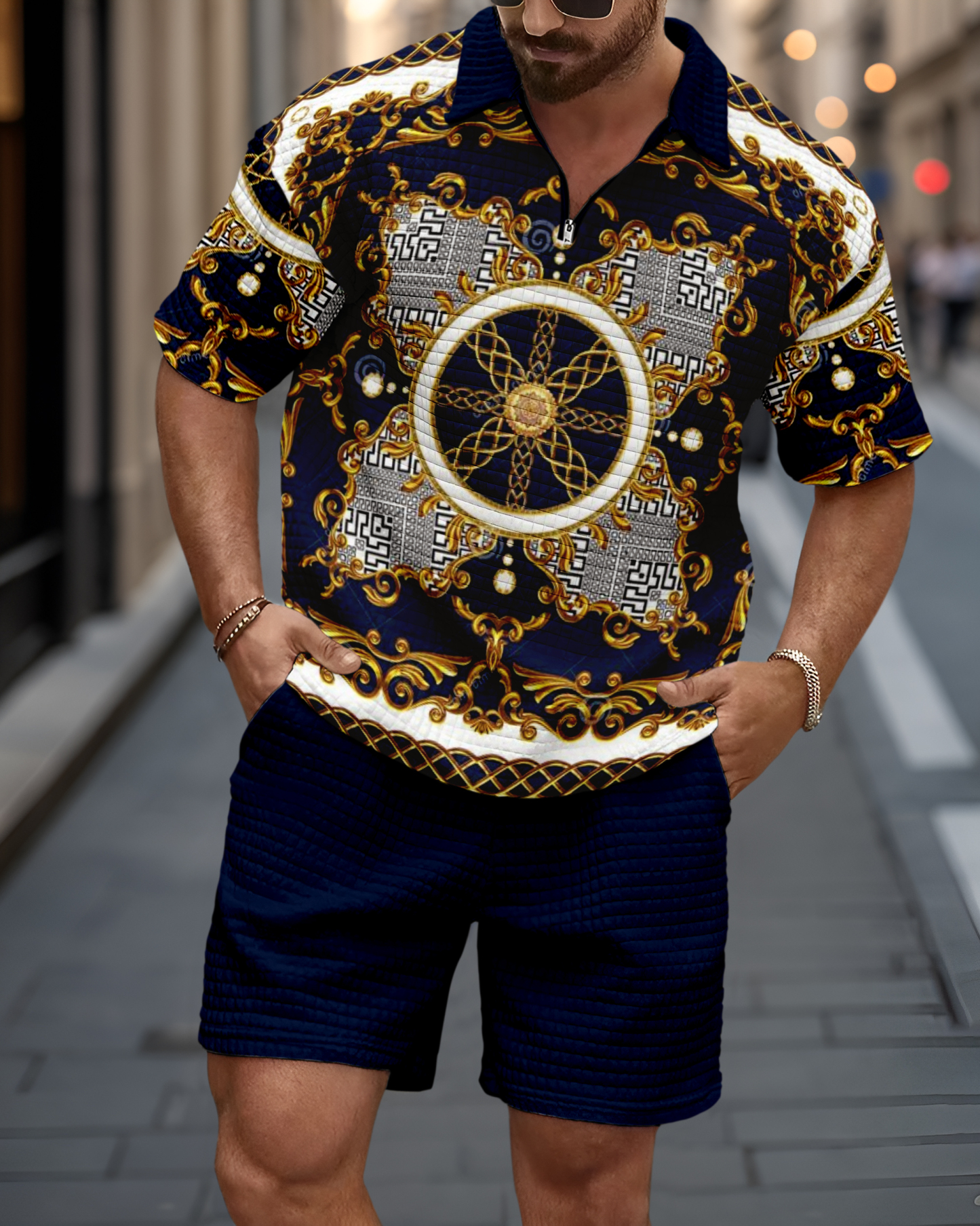 Men's casual waffle texture summer Polo Set 036
