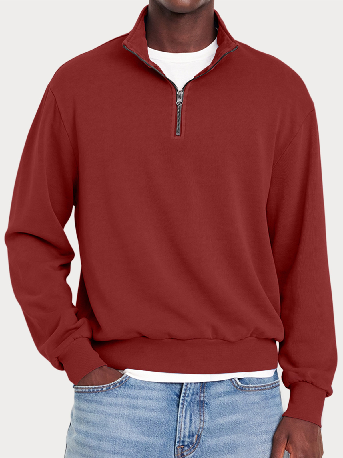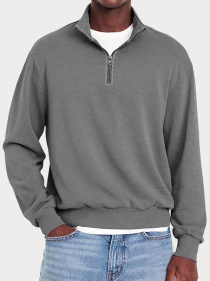 Men's Casual Zipper Half Turtleneck Solid Color Comfortable Sweatshirt