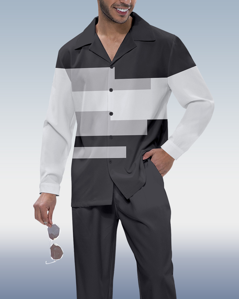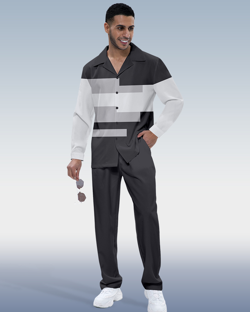 Men's Color Block Printed Long Sleeve Shirt Walking Suit 442