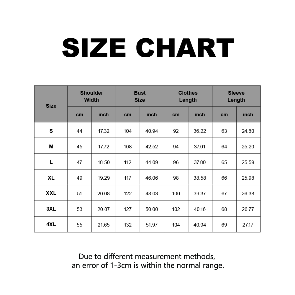 This size is the standard size for thin body types. If you want a loose fit, it is recommended to choose a larger size. If you have a big belly, it is recommended to choose two sizes larger. If the size is not suitable, we support free exchange.