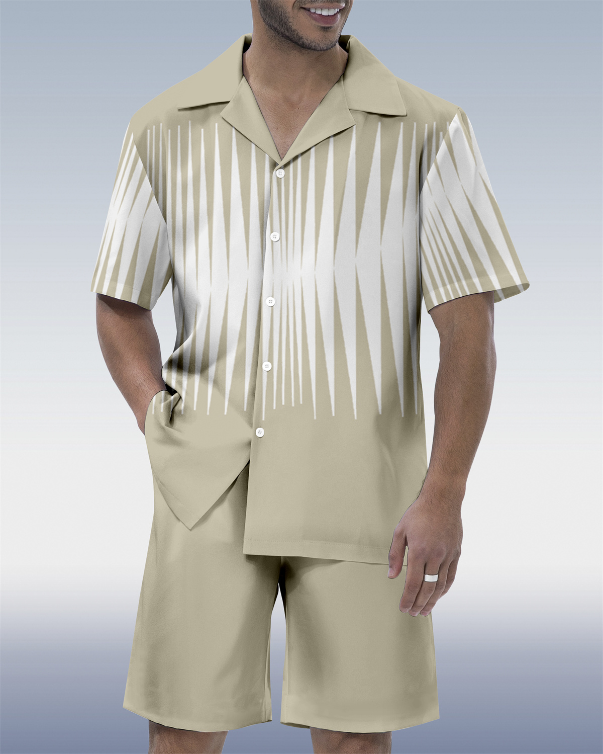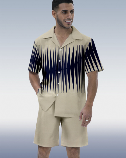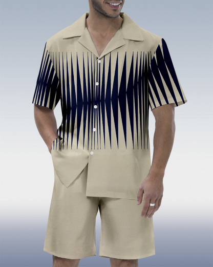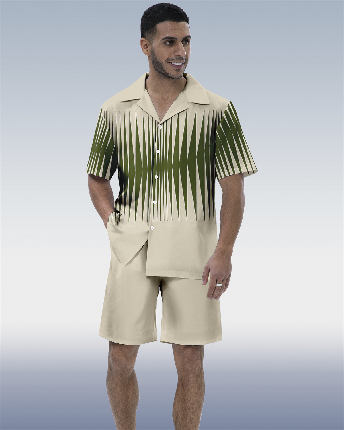 Men's Colorblock Geometric Hawaiian Cuban Collar Short Sleeve Shirt Set – Mentalmens