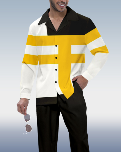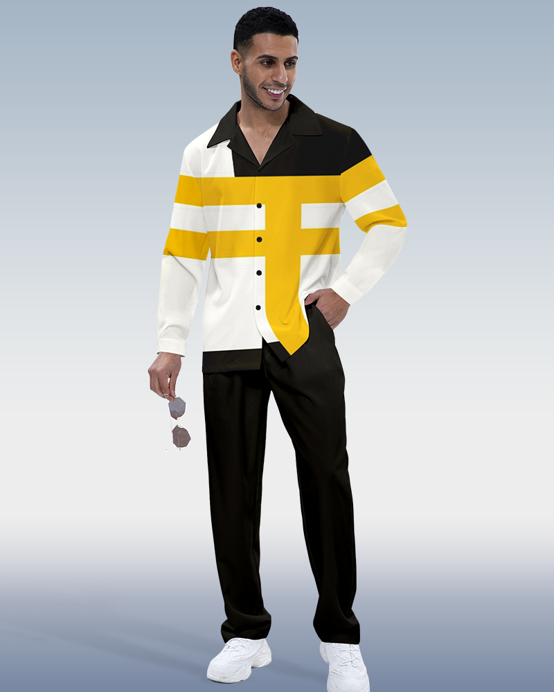 Men's Colorblock Lineart Long Sleeve Shirt Walking Set 26