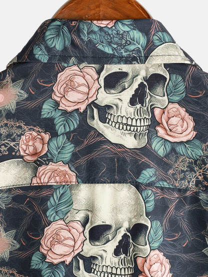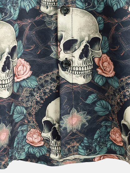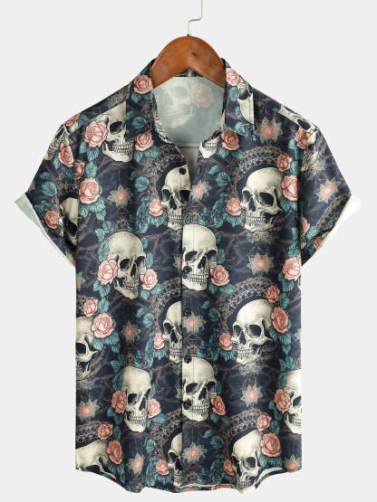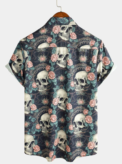 Men's Cool Skull Punk Rock Holiday Beach Short Sleeve Summer Shirt