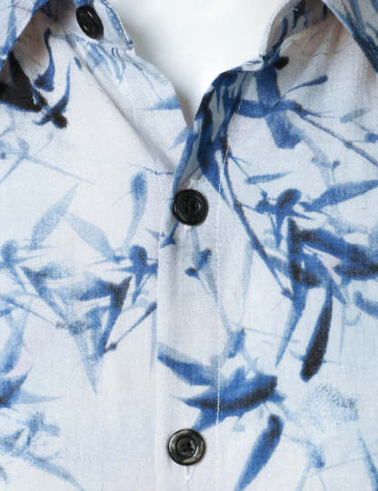 Men's Cotton Bamboo Art Print Button Summer Casual Short Sleeve Light Blue Hawaiian Shirt