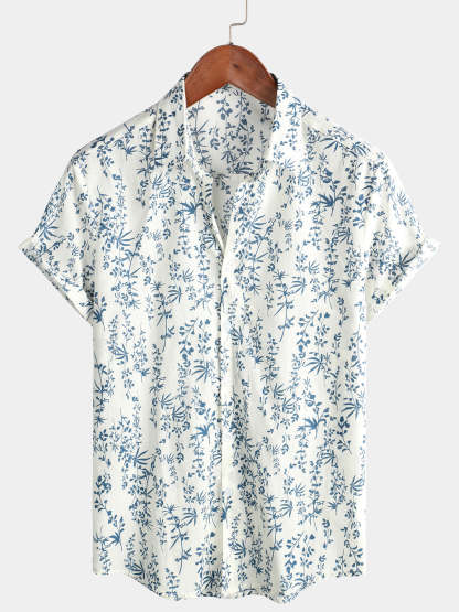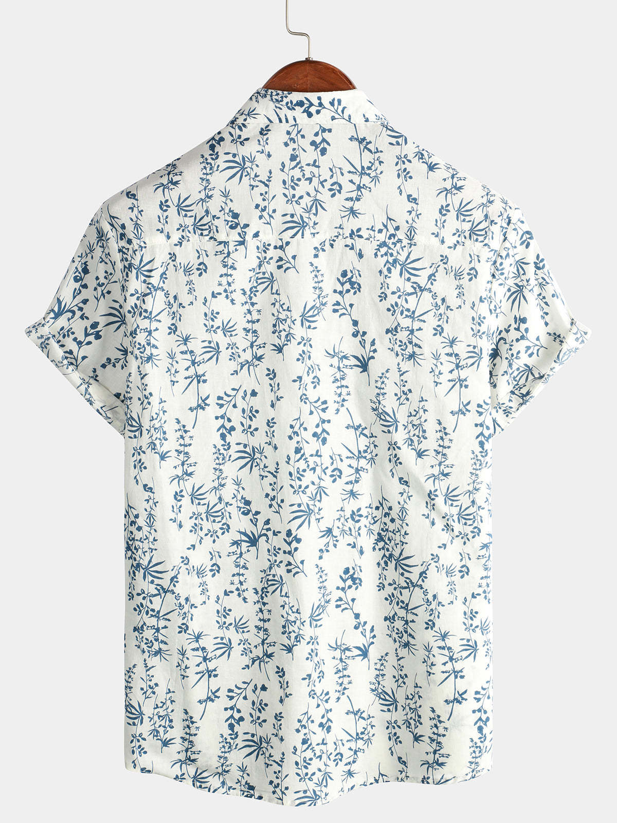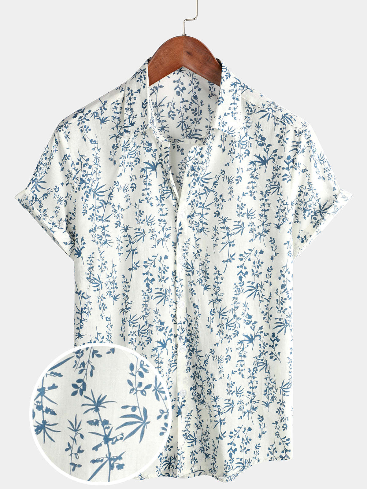Men's Cotton Floral Button Up Summer Short Sleeve Shirt