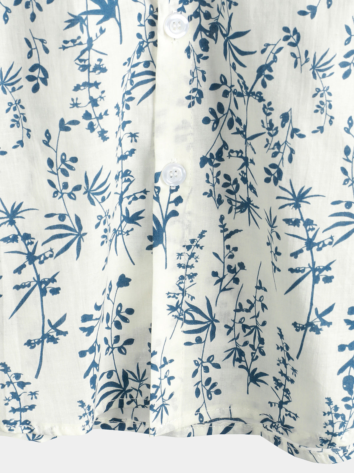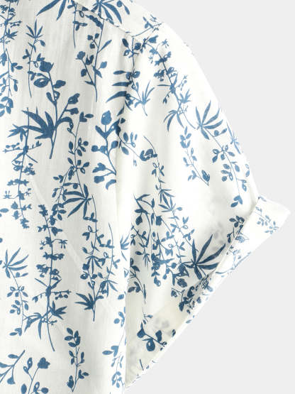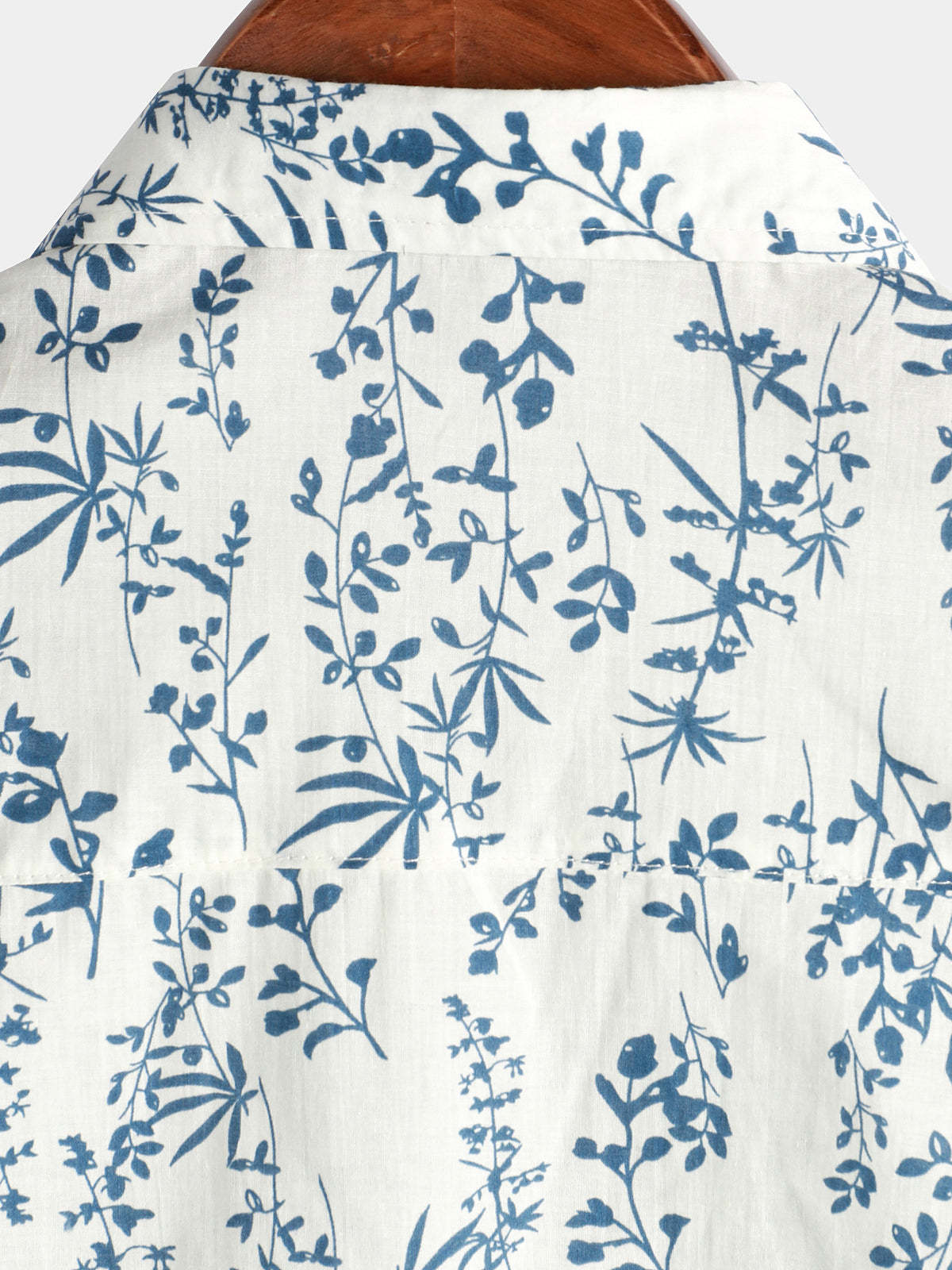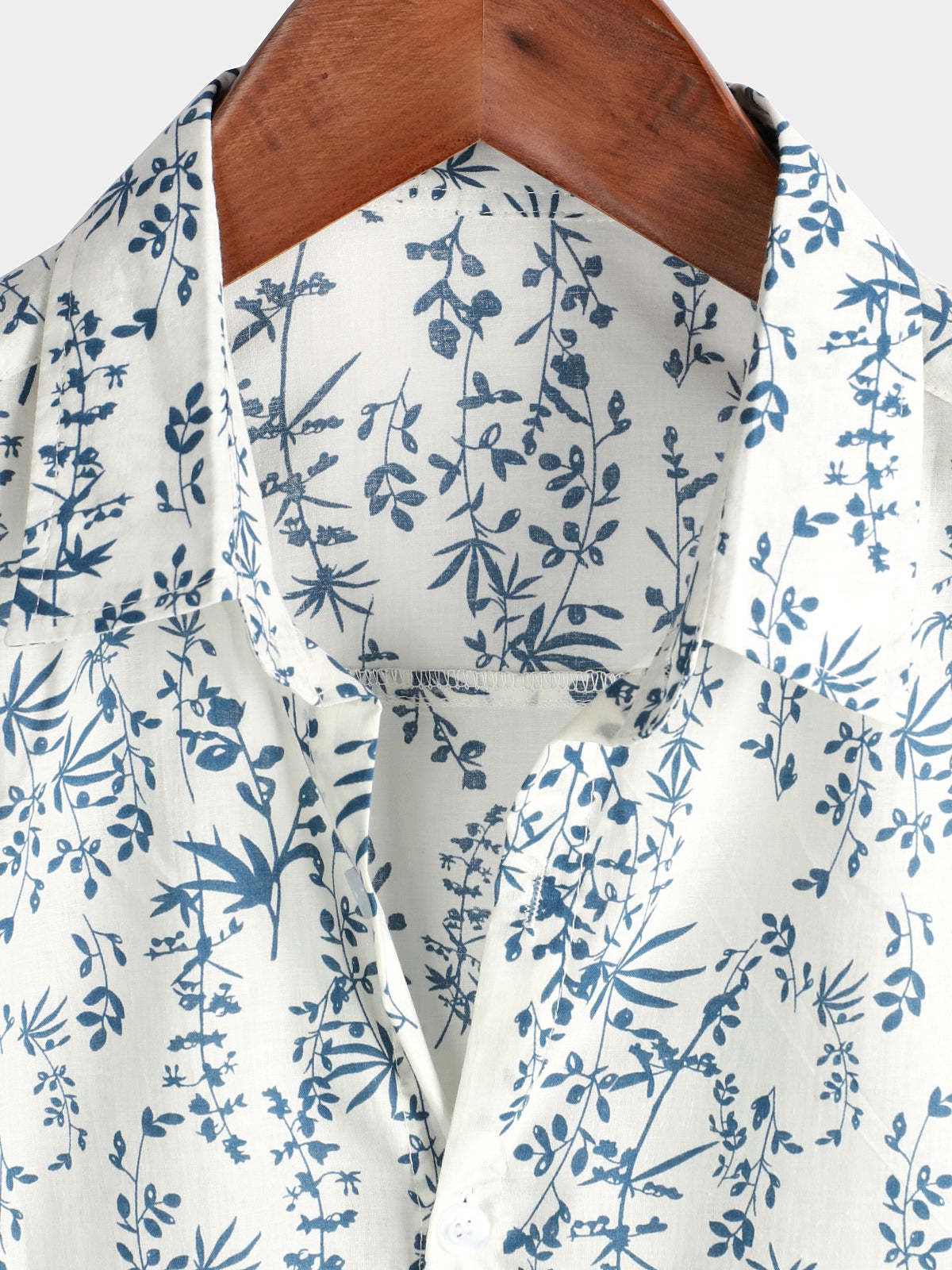 Men's Cotton Floral Button Up Summer Short Sleeve Shirt