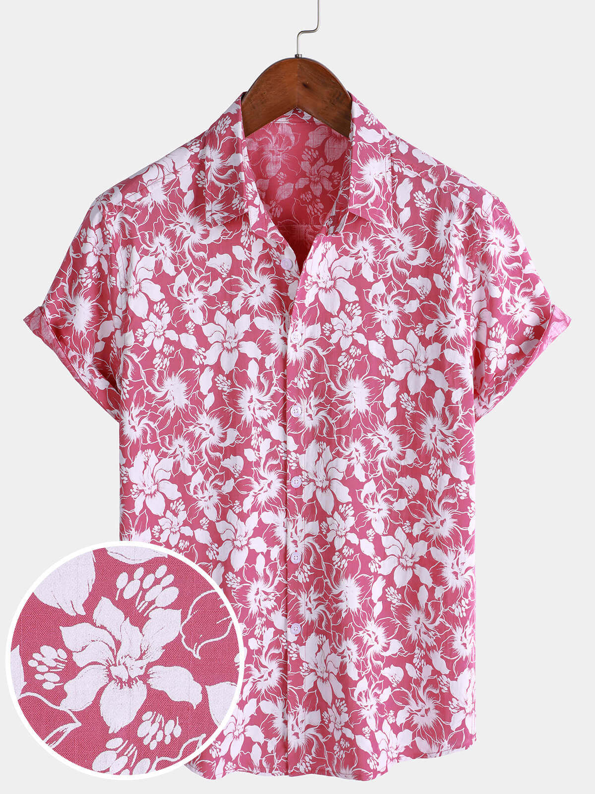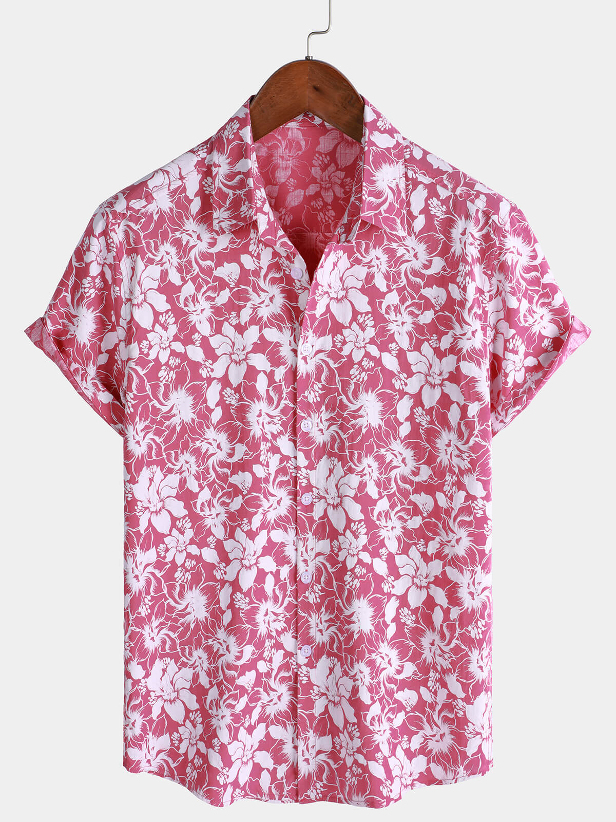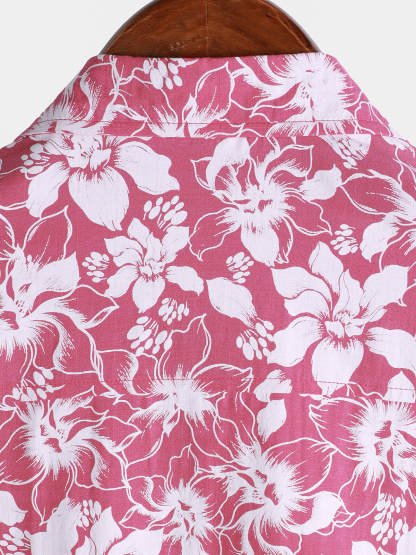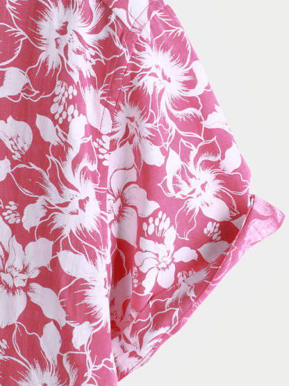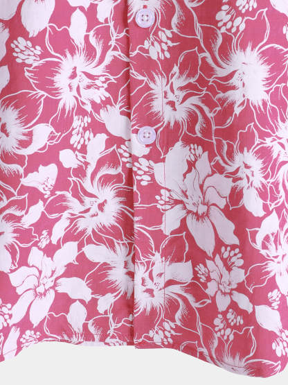 Men's Cotton Holiday Floral Print Hawaiian Beach Short Sleeve Shirt