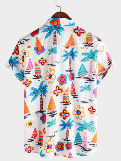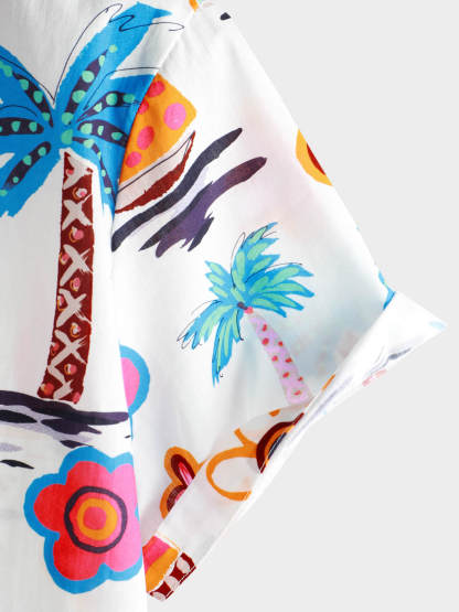 Men's Cotton Tropical Print Summer Hawaiian Button Up Short Sleeve Shirt