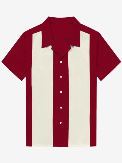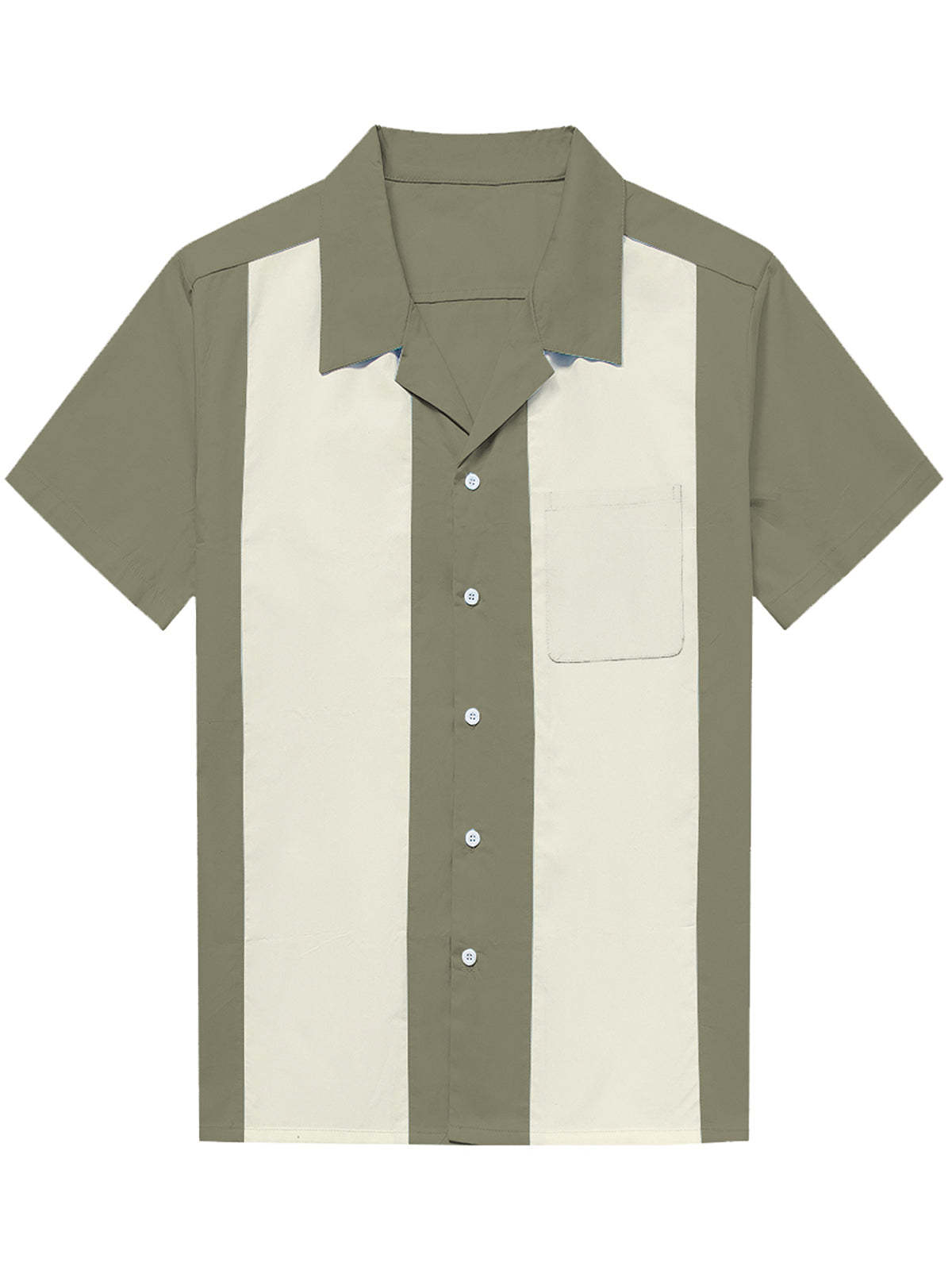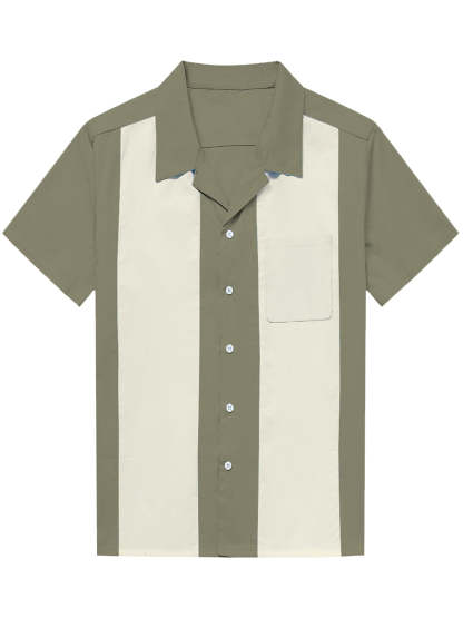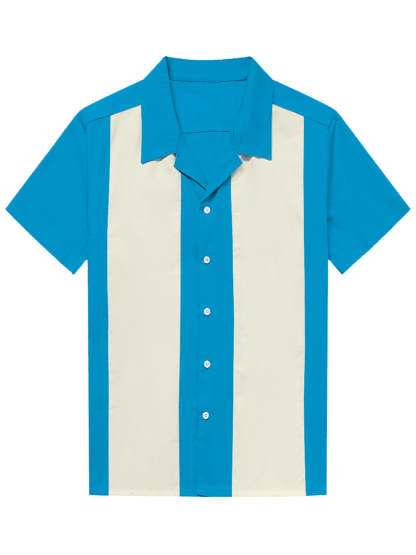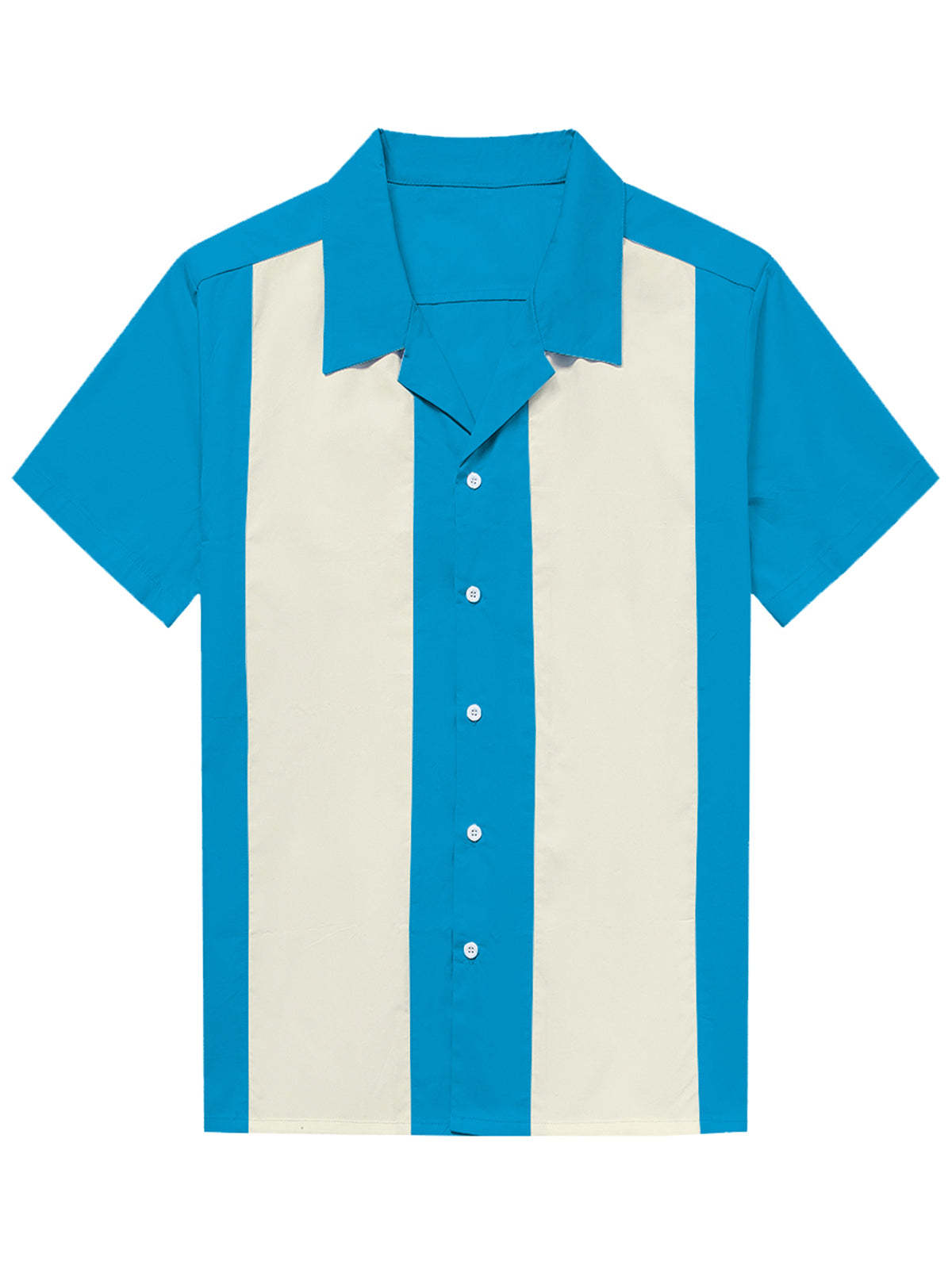 Men's Cuban Collar 50's Retro Camp Bowling Blue Short Sleeve Shirt
