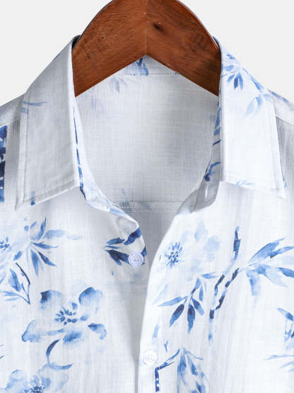 Men's Elegant Blossom Print Casual Short Sleeve Shirt