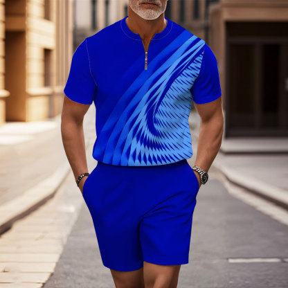 Men's Fashion Casual Round-Neck Geometric Printed Short-Sleeved Two-Pi – Mentalmens