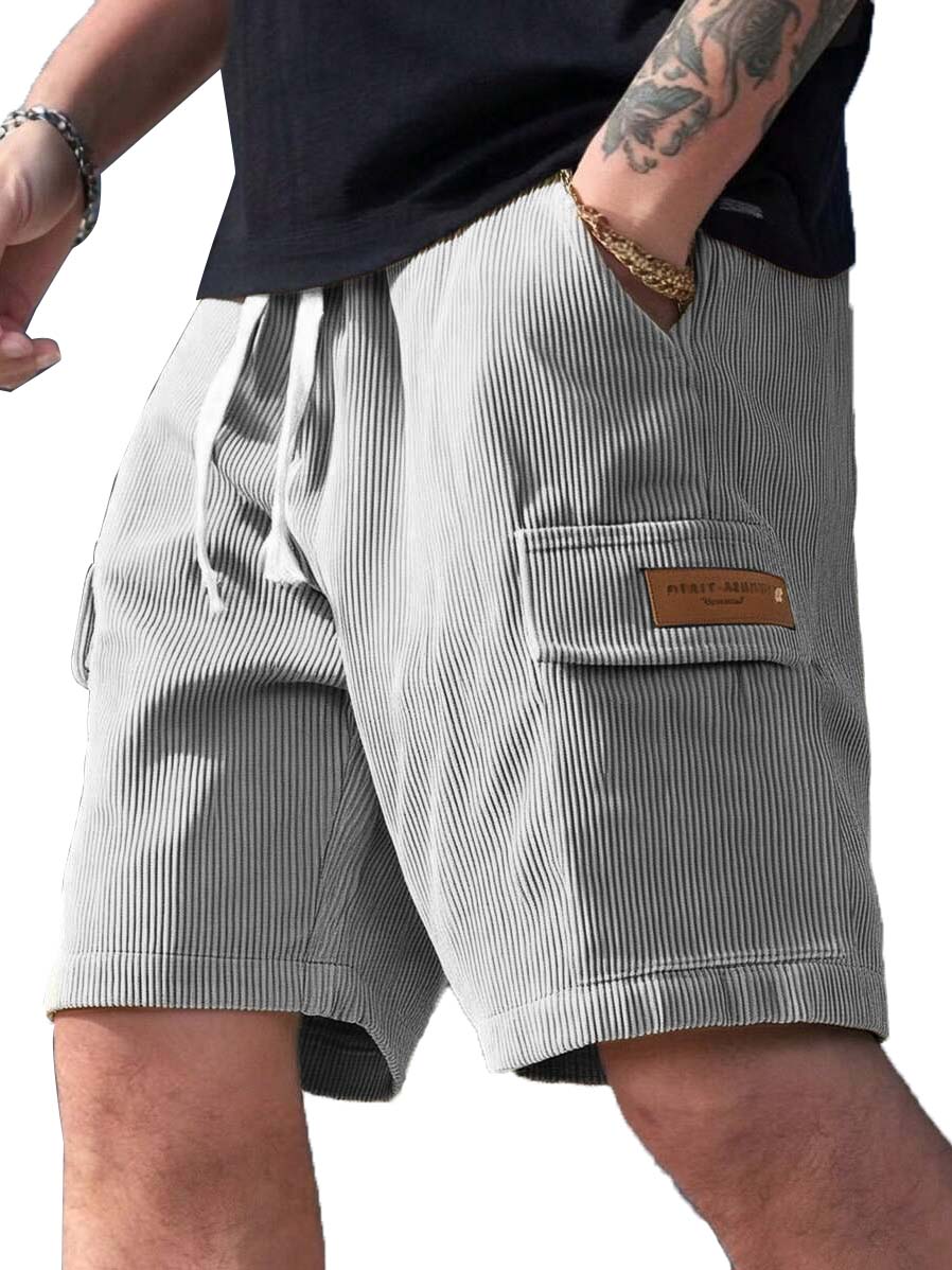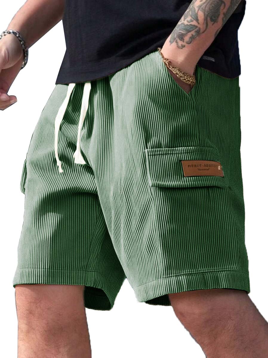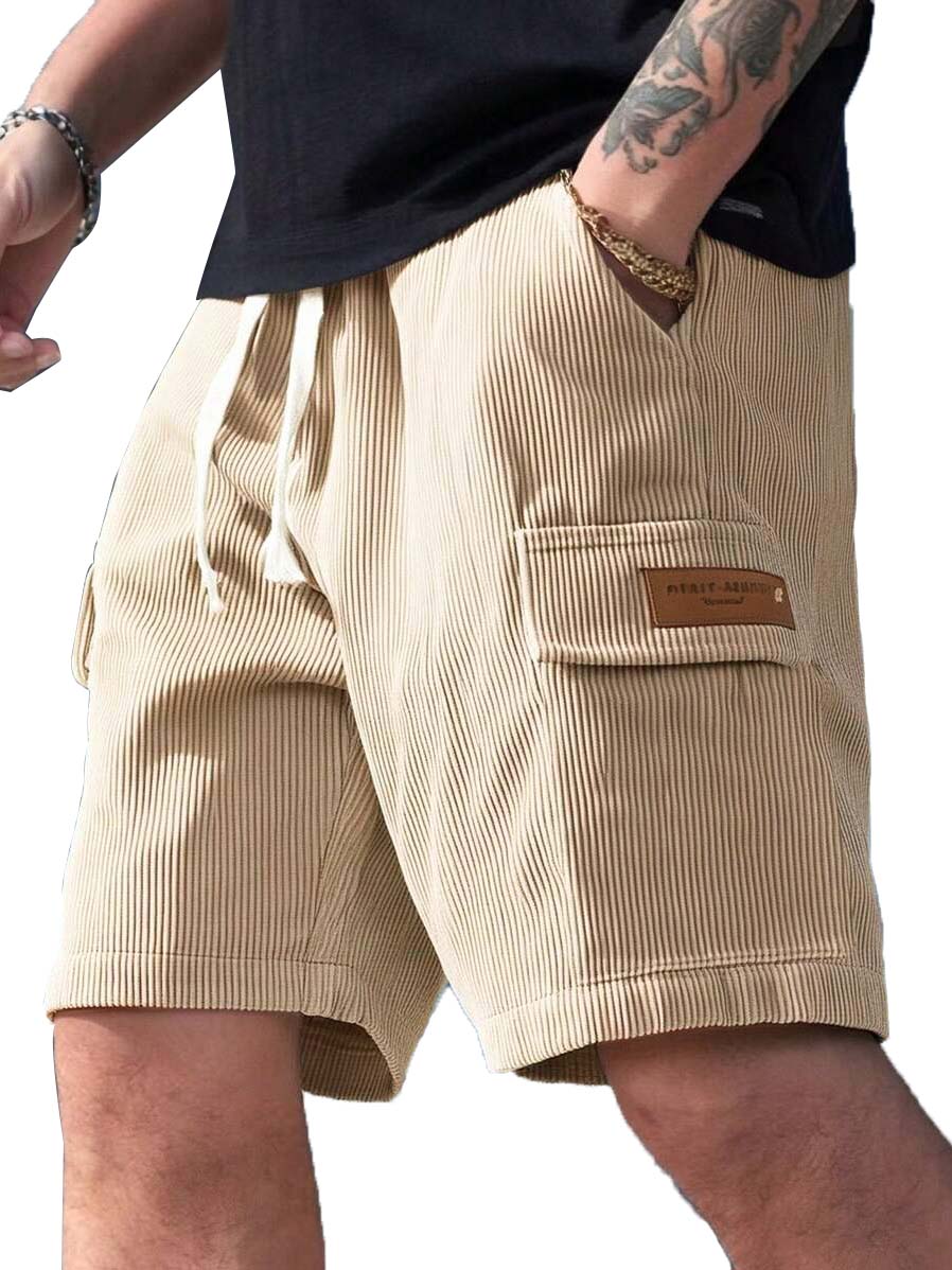 Men's Fashion Retro Workwear Pocket Ribbed Embroidered Logo Shorts