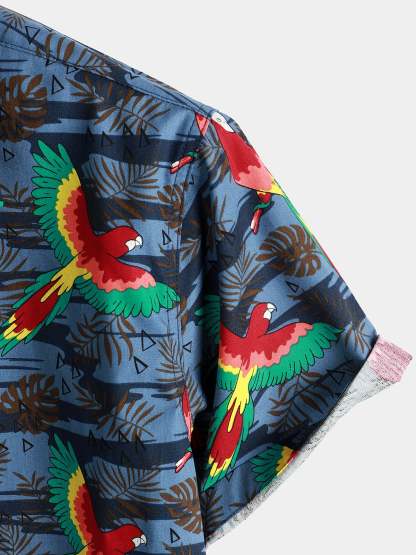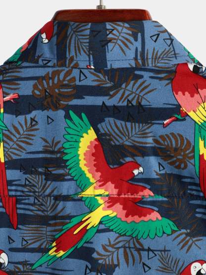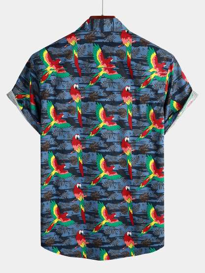 Men's Parrot Print Beach Short Sleeve Shirt