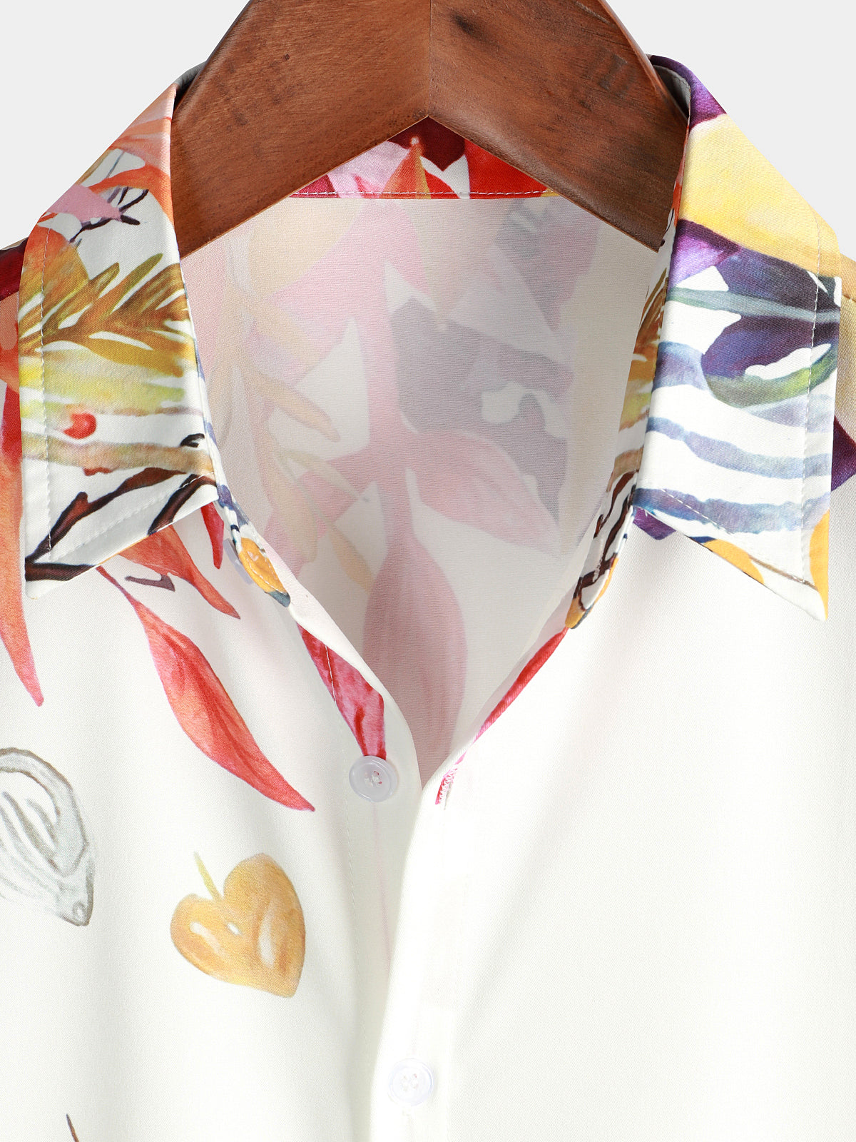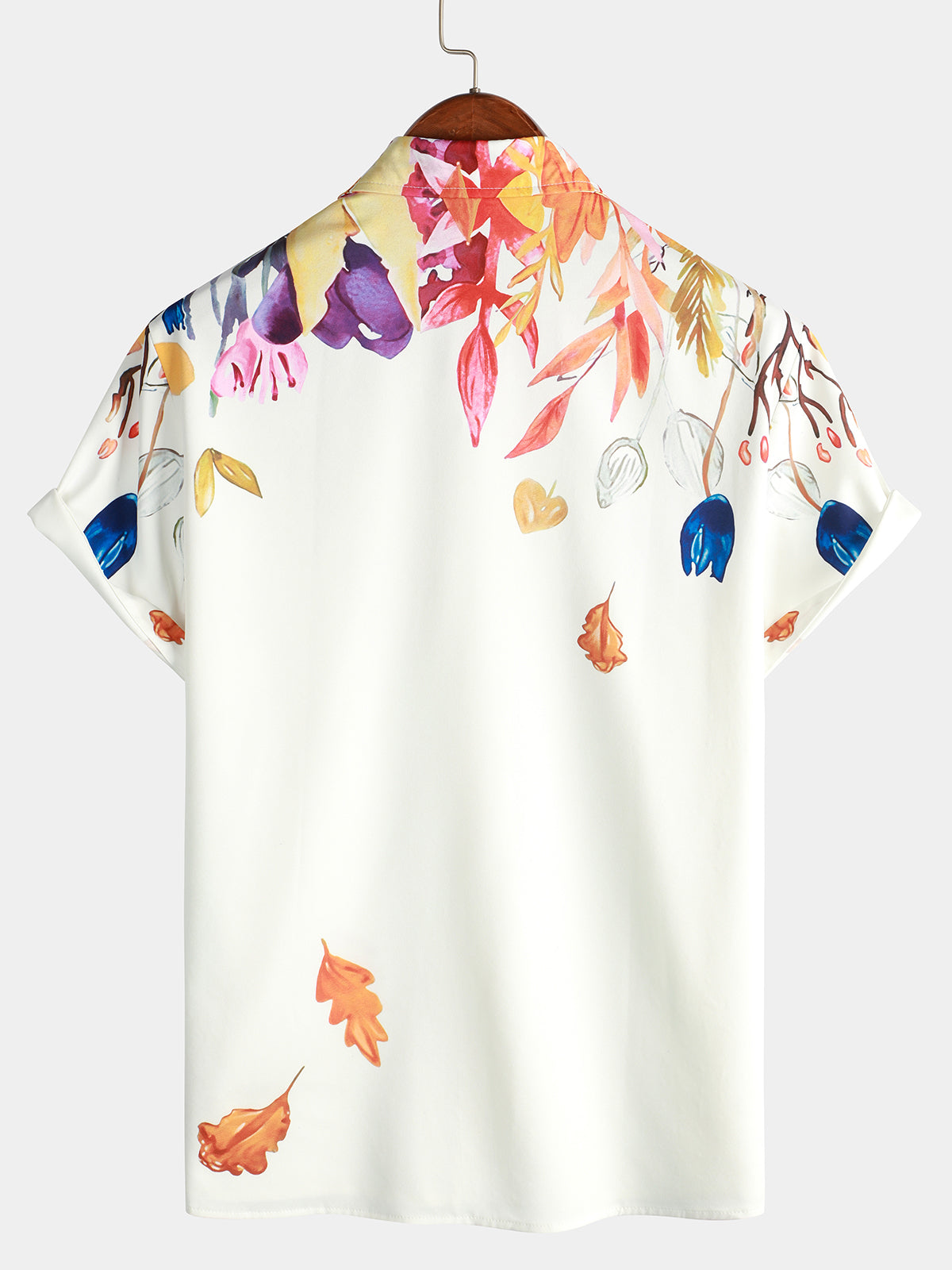 Men's Floral Casual Beach Summer Button Up Holiday Short Sleeve Shirt